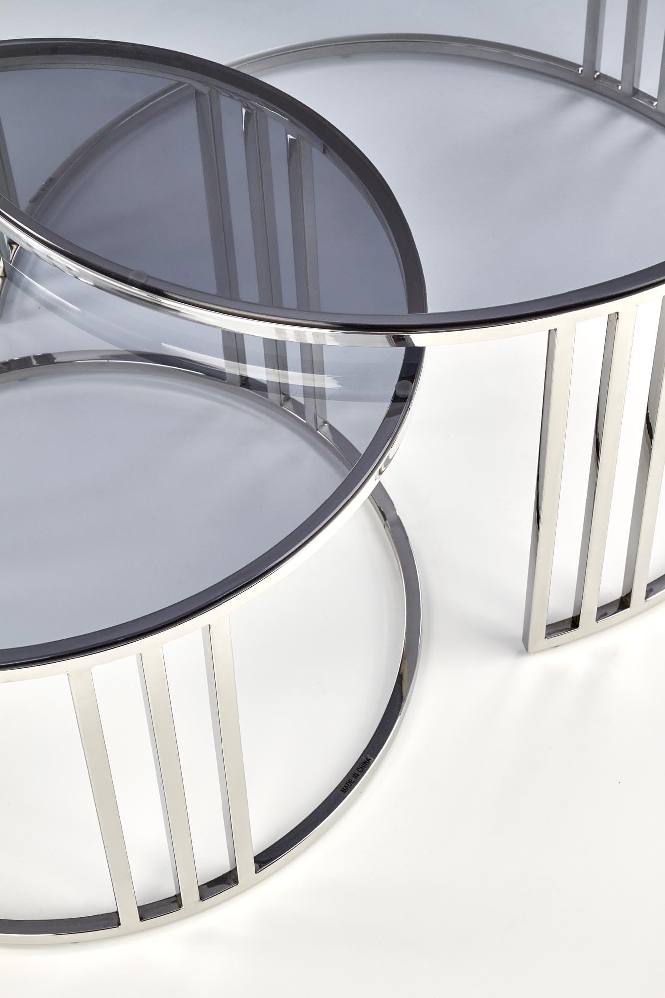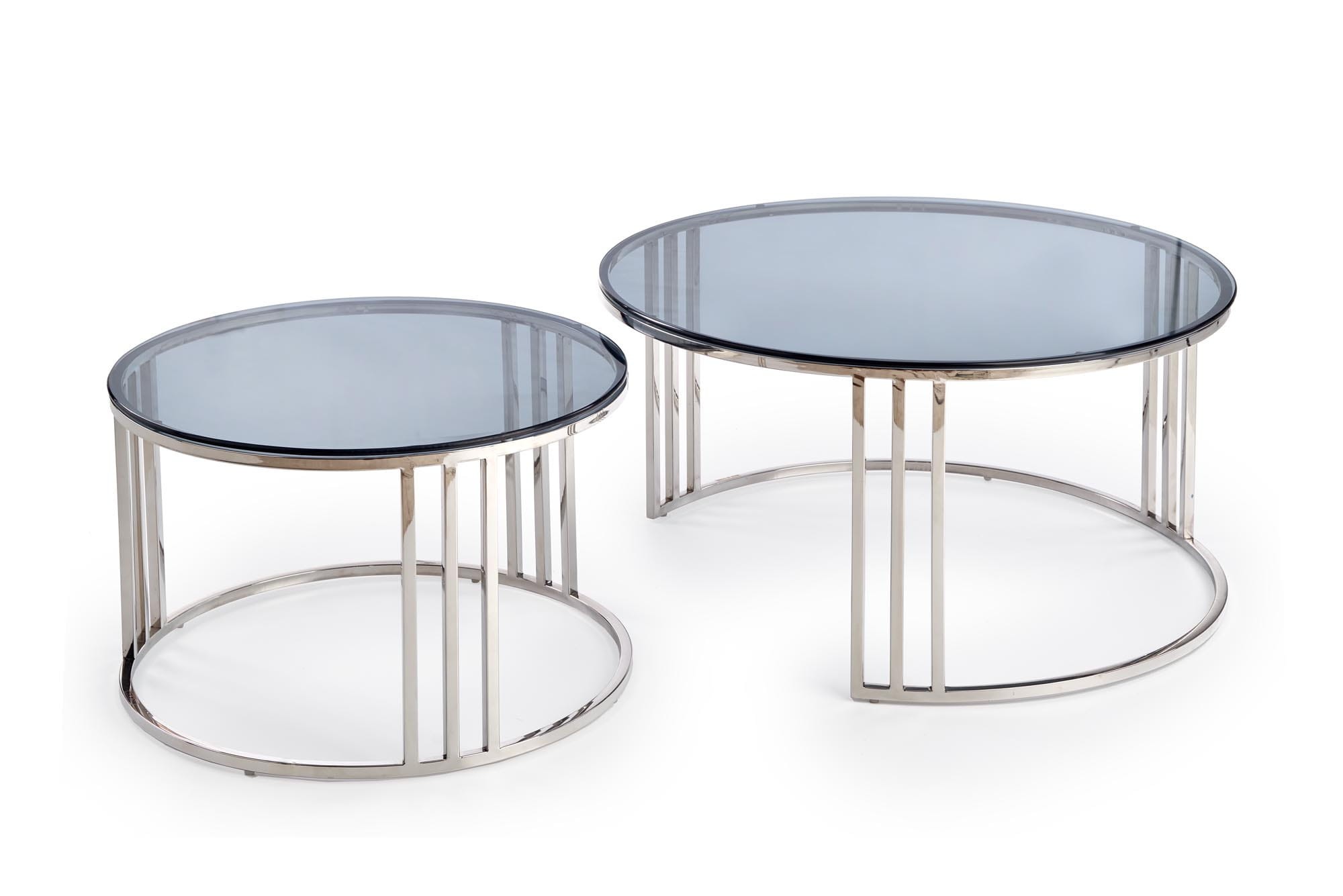 MERCURY zestaw 2 ław, stelaż - srebrny, szkło - dymiony