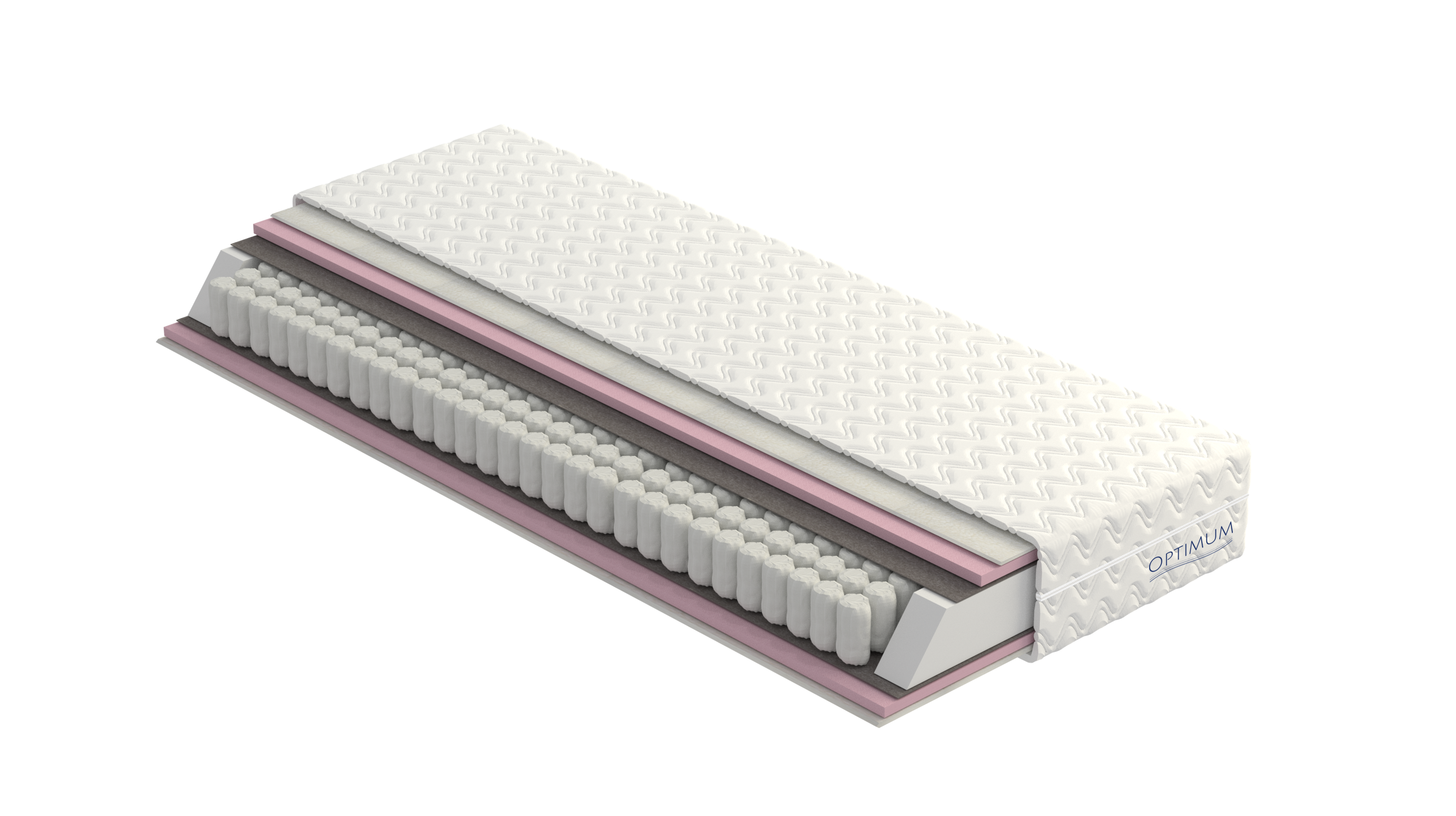 Wkład: sprężyny kieszeniowe jednostrefowe (około 260 sprężyn na m2), przekładki tapicerskie, płyty z pianki poliuretanowej (2cm) o zwiększonej gęstości, warstwa bawełny oraz wełny owczej.