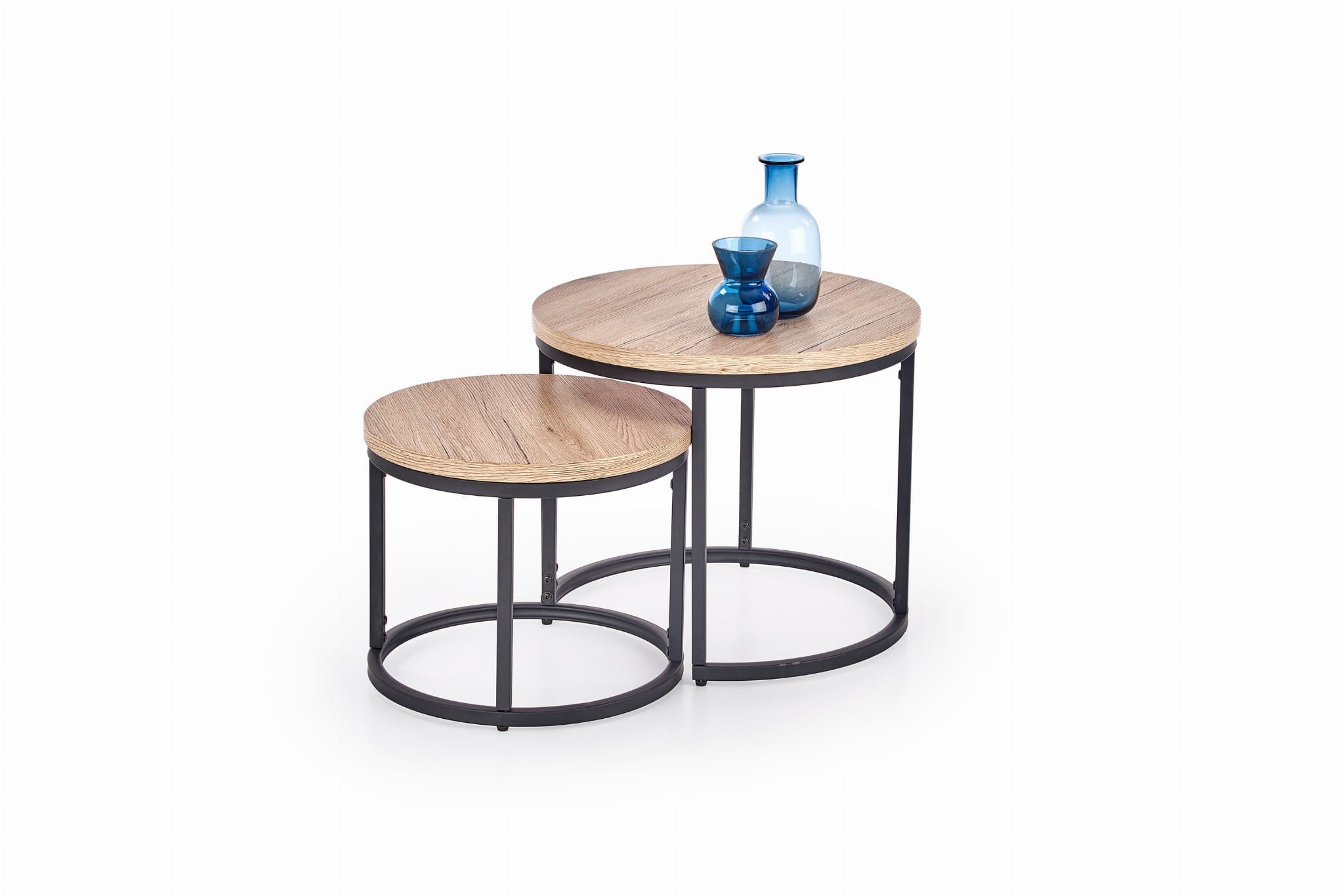 wymiary: duża - O53/45 cm, mała - O43/35 cm, zestaw 2 ław, materiał: MDF okleinowany / stal malowana proszkowo, kolor: dąb san remo - czarny
