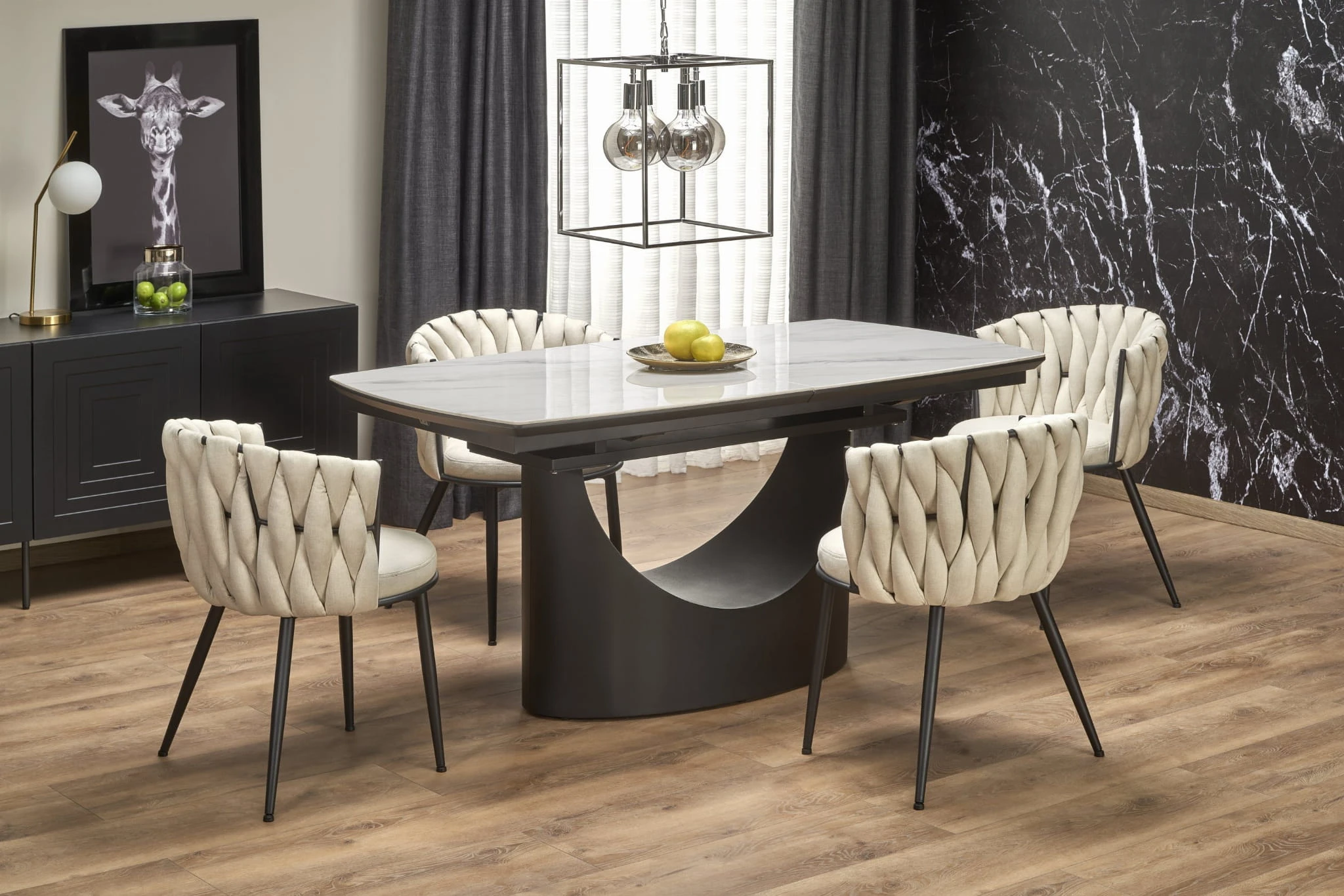 OSMAN stół rozkładany, biały marmur / czarny (2p=1szt)