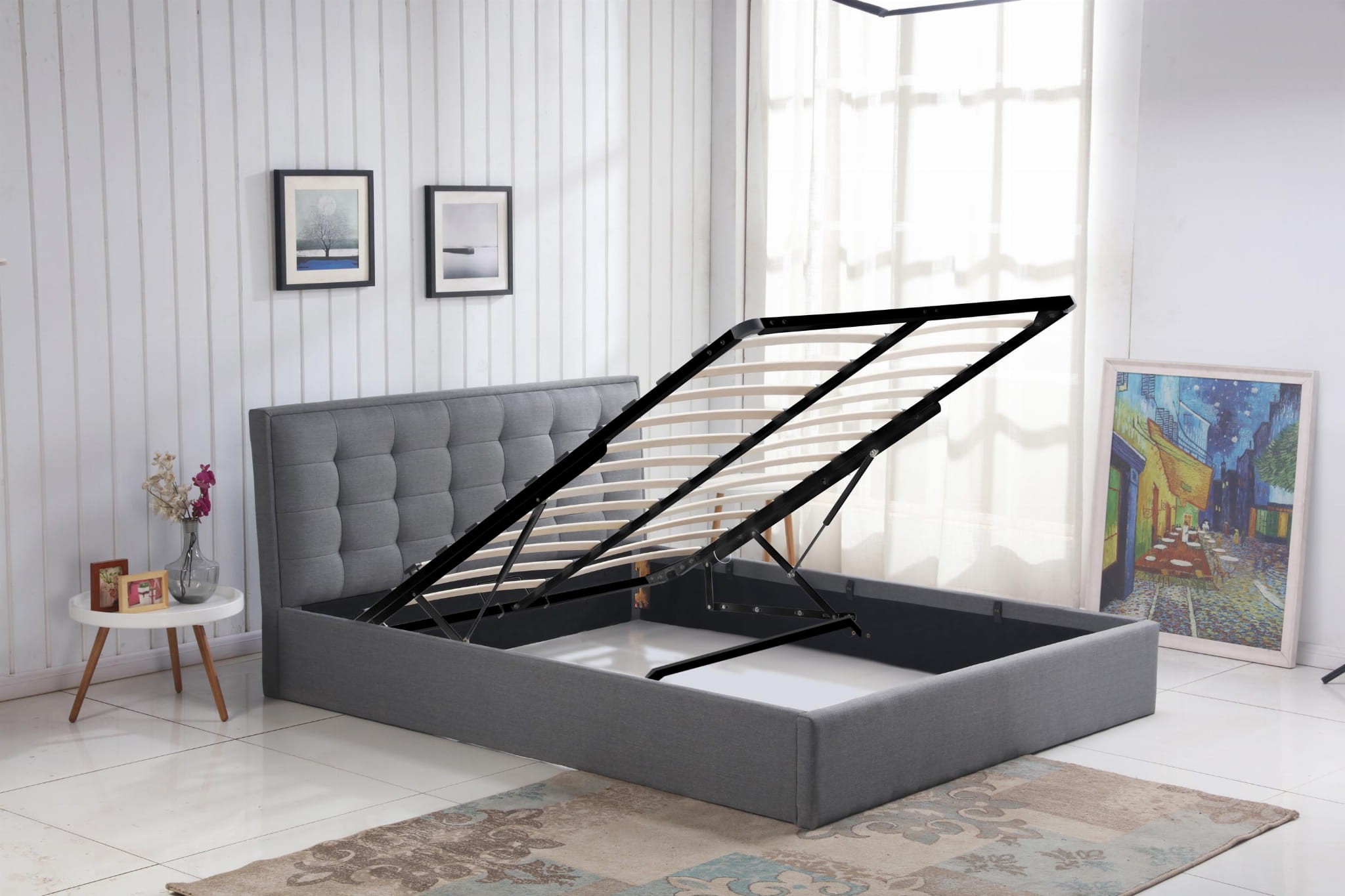 wymiary: 171/217/100 cm, łóżko z pojemnikiem na pościel, materiał: tkanina, kolor: popielaty, * łóżko bez materaca, w opcji materac POLARIS 160