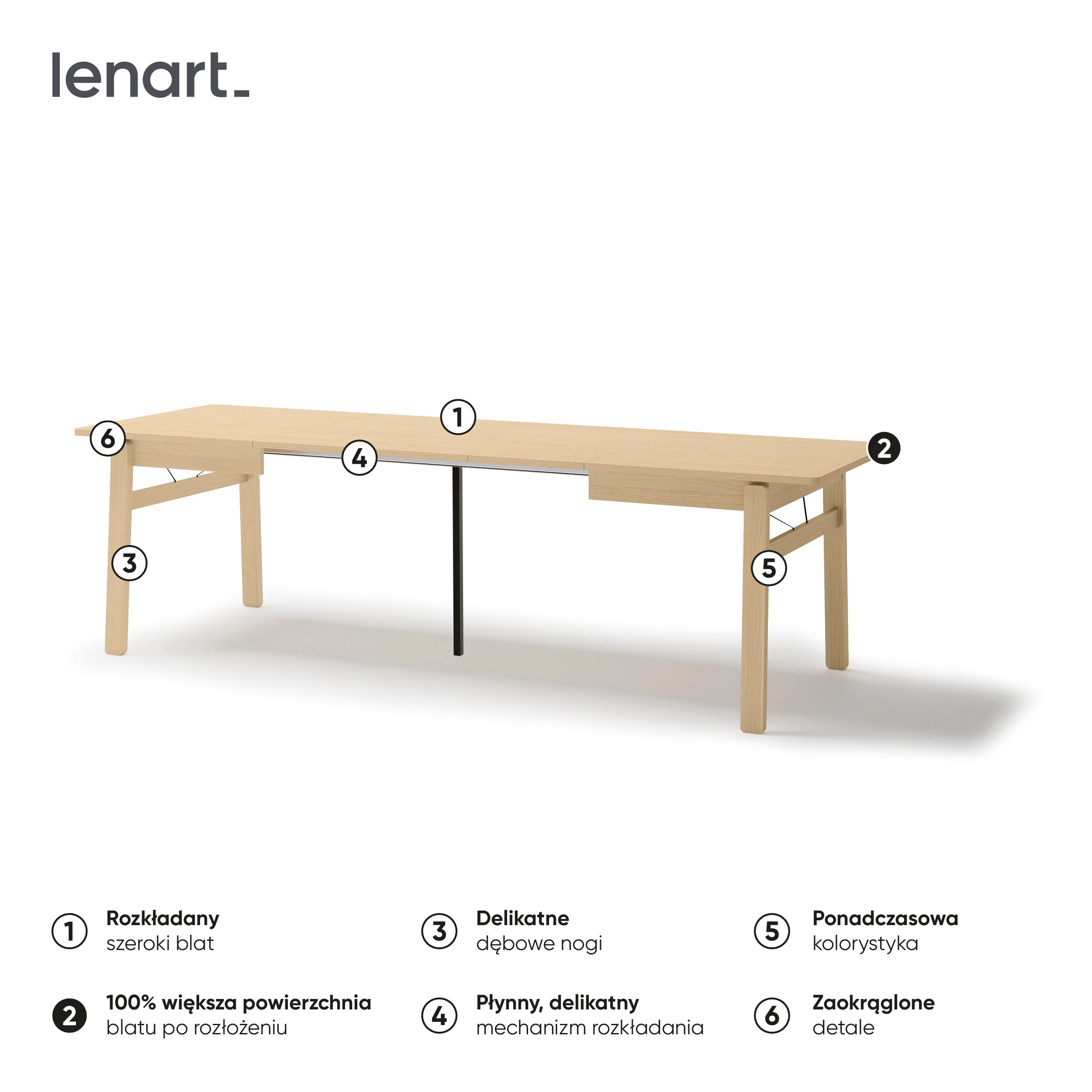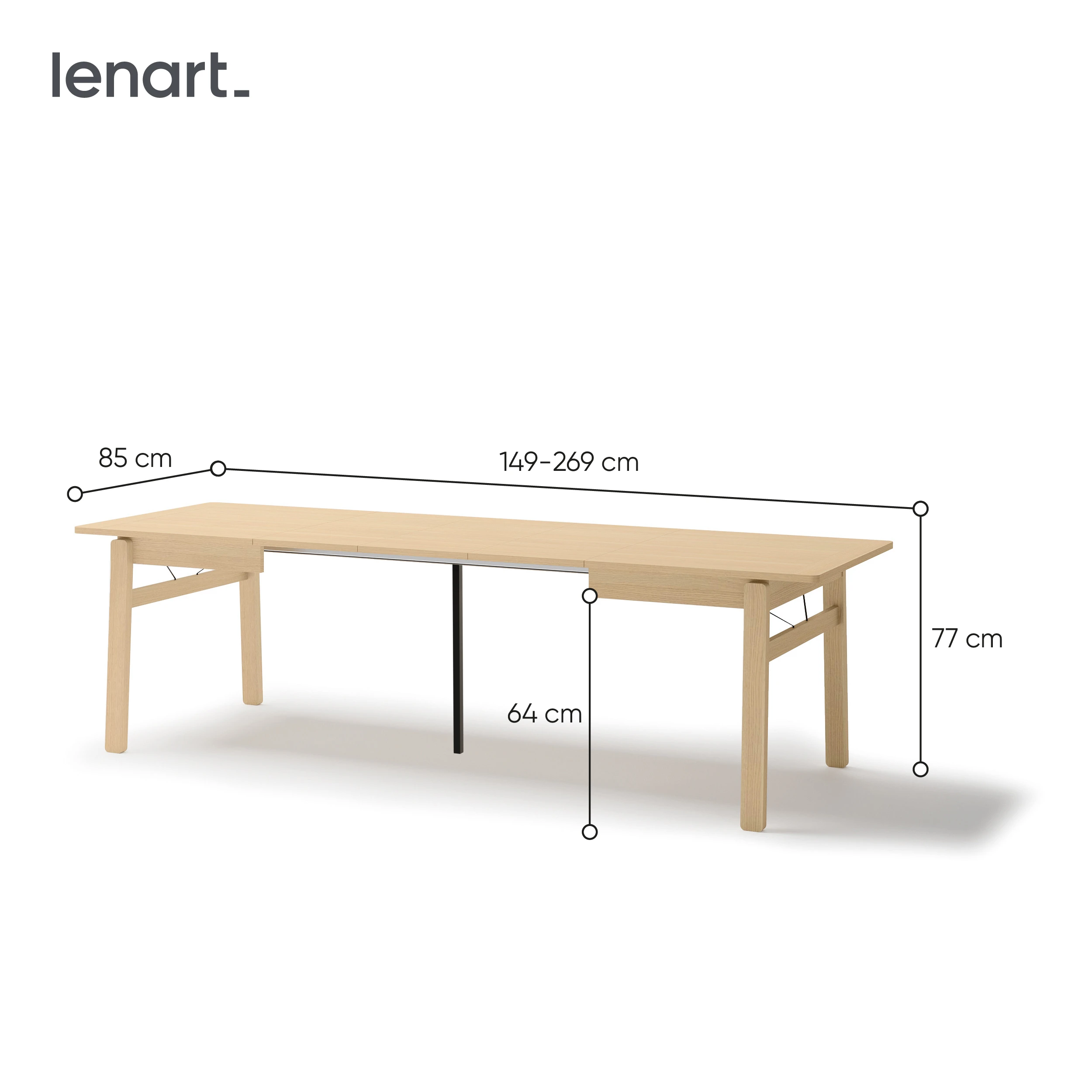 Dzięki wymiarom 149x85 cm świetnie sprawdzi się na co dzień, a po rozłożeniu aż do 269 cm zapewni komfortową przestrzeń nawet dla większej liczby gości. To doskonały stół rozkładany do jadalni, który dopasowuje się do każdej okazji.