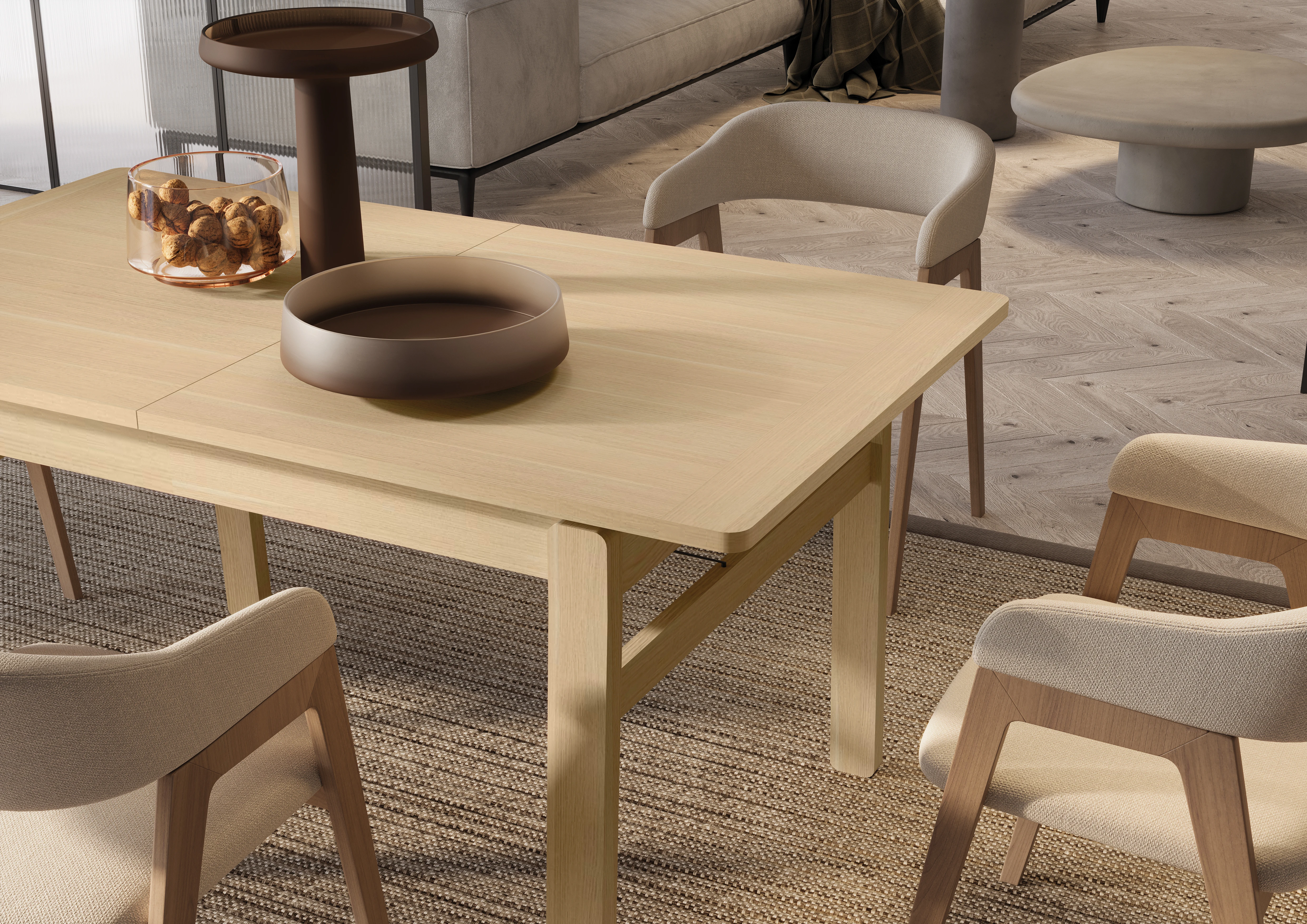 Wykończenie w odcieniu dąb jasny nadaje wnętrzu elegancji, głębi i luksusowego charakteru. To kolor, który: