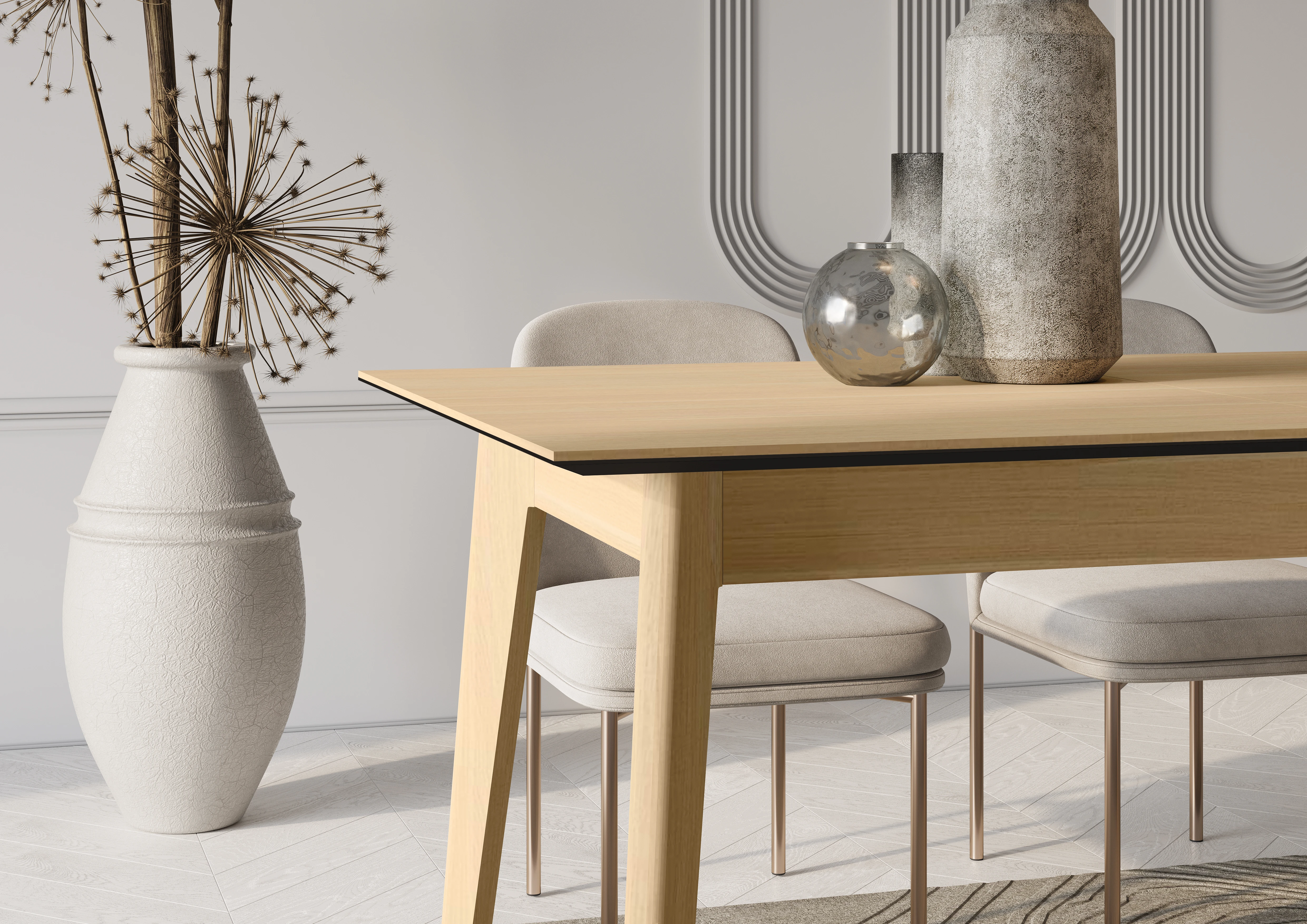 Stół rozkładany PT-03 Plot dąb jasny to nowoczesny i praktyczny mebel, który doskonale sprawdzi się zarówno w jadalni, jak i salonie. Łączy w sobie klasyczny wygląd, solidne wykonanie oraz funkcjonalność, dzięki czemu idealnie odpowiada na potrzeby codziennego użytkowania i spotkań w większym gronie.