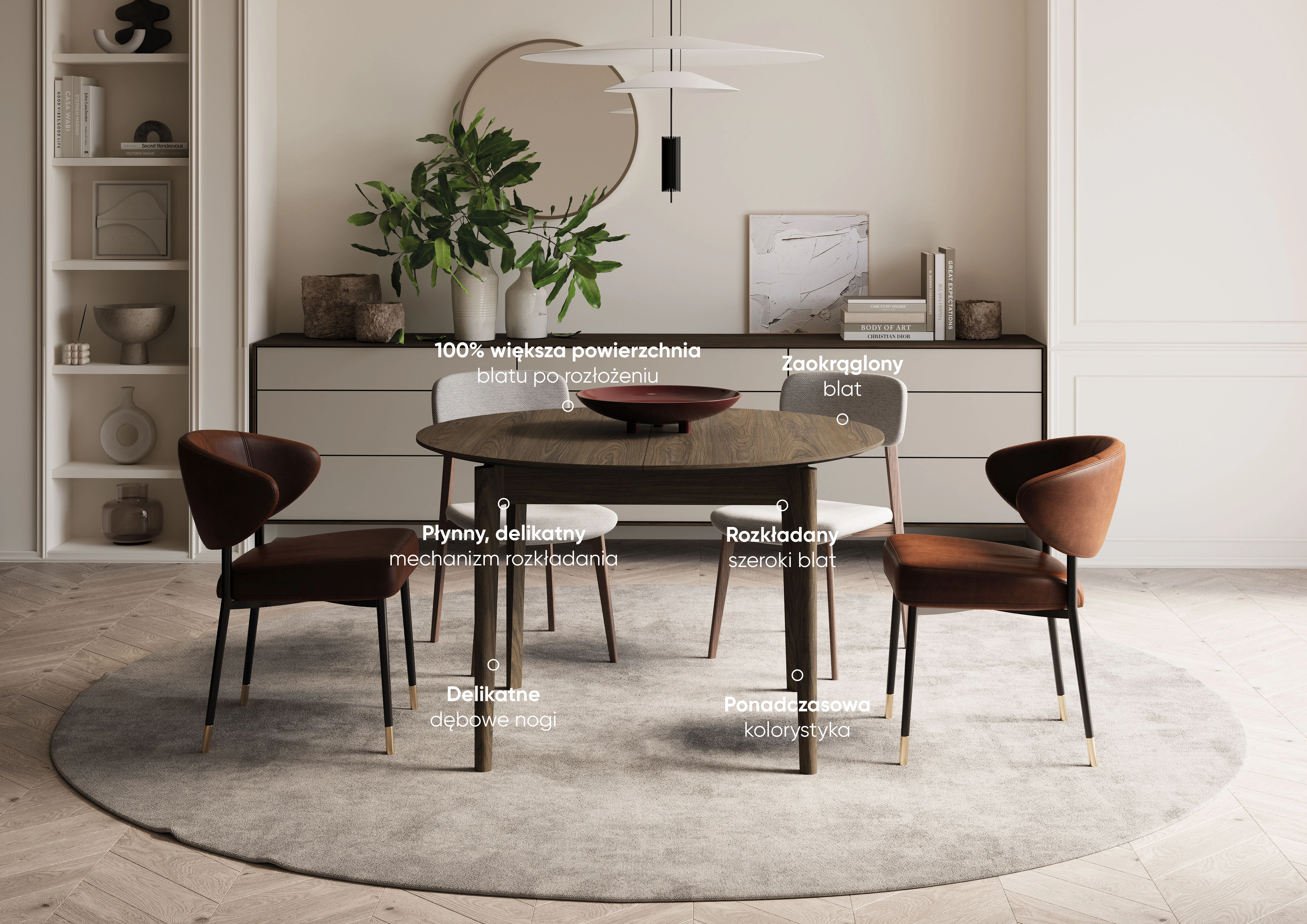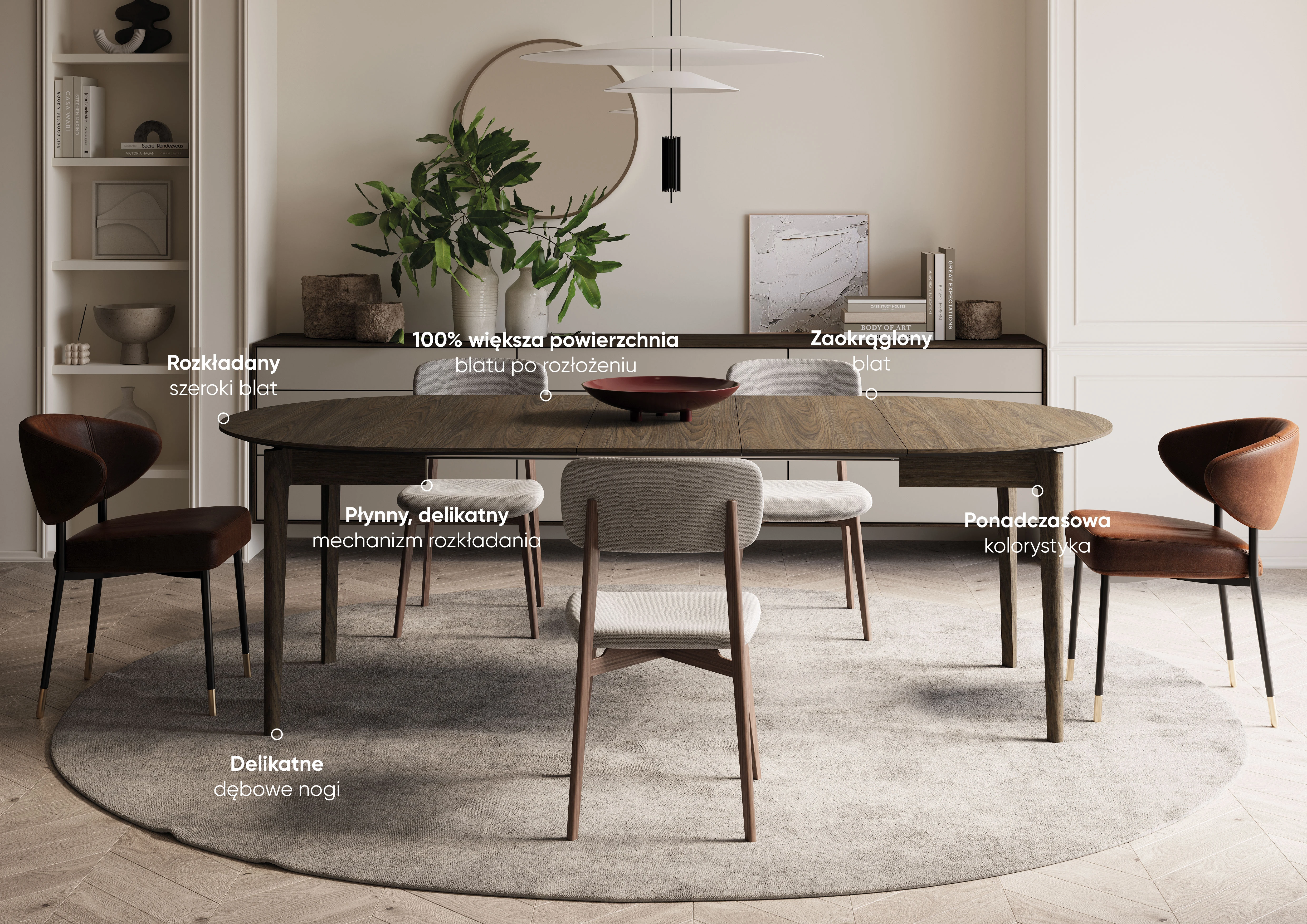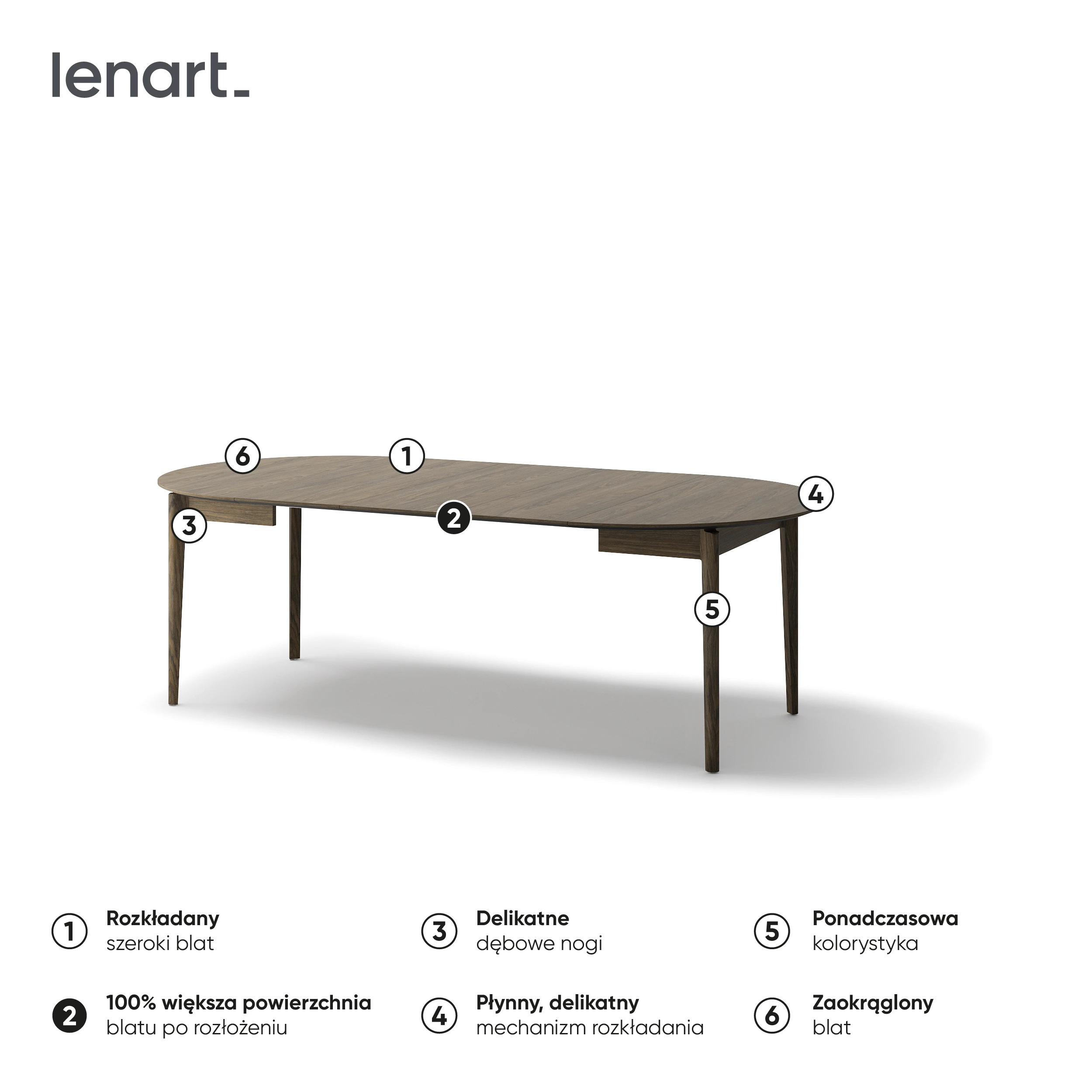 PLOT PT-04 Stół okrągły rozkładany 120–240 cm dąb ciemny