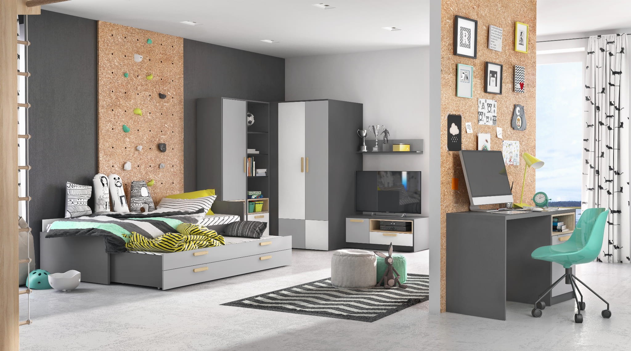 Z kolekcją mebli POK zaaranżujesz nowoczesną, funkcjonalną przestrzeń. Modne barwy oraz geometryczne bryły sprawią, że wnętrze będzie pozytywne i pełne energii. System różnej wielkości regałów i szaf umożliwi ich łączenie w ciekawe i funkcjonalne zestawy. Dzięki dużej różnorodności mebli urządzisz pokój skrojony na miarę jego lokatora.