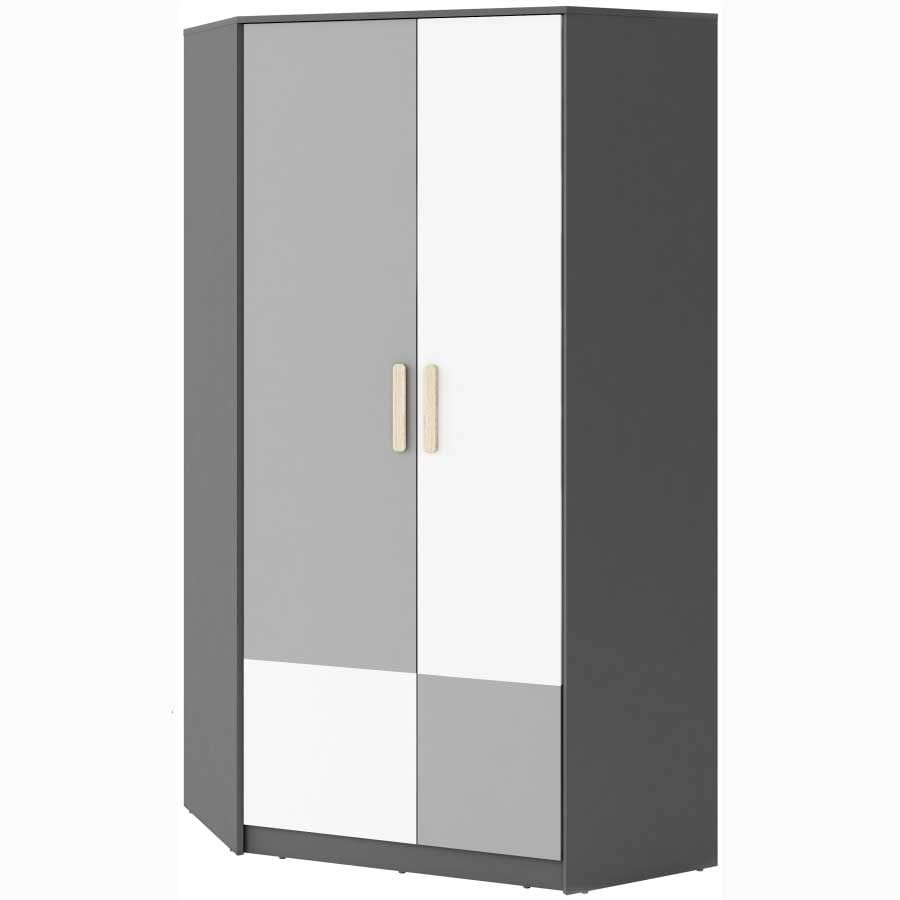 Szafa narożna PO-01 - szafa narożna to doskonałe rozwiązanie dla osób, które posiadają niewykorzystane miejsce w rogu pomieszczenia, albo zależy im aby wykorzystać przestrzeń efektywniej. Dzięki swojemu kształtowi posiada ona większą przestrzeń do przechowywania niż normalna szafa. Składa się z drążków, półek, a także szuflady zatem zmieścisz w niej całą garderobę Twojego dziecka, a w pokoju zapanuje ład i porządek. Połączenie kilku nowoczesnych kolorów pozwala stworzyć ciekawy design , na który zwróci uwagę każdy gość. Ogromnym atutem są materiały z których wykonana jest szafa, gwarantują one wieloletnie użytkowanie bez uszkodzeń i zadrapań.