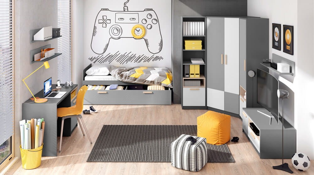 Z kolekcją mebli POK zaaranżujesz nowoczesną, funkcjonalną przestrzeń. Modne barwy oraz geometryczne bryły sprawią, że wnętrze będzie pozytywne i pełne energii. System różnej wielkości regałów i szaf umożliwi ich łączenie w ciekawe i funkcjonalne zestawy. Dzięki dużej różnorodności mebli urządzisz pokój skrojony na miarę jego lokatora. Meble wykonane z wysokiej jakości płyty laminowanej odpornej na zarysowania i temperaturę, a obrzeża mebli zabezpieczone trwałym tworzywem ABS.