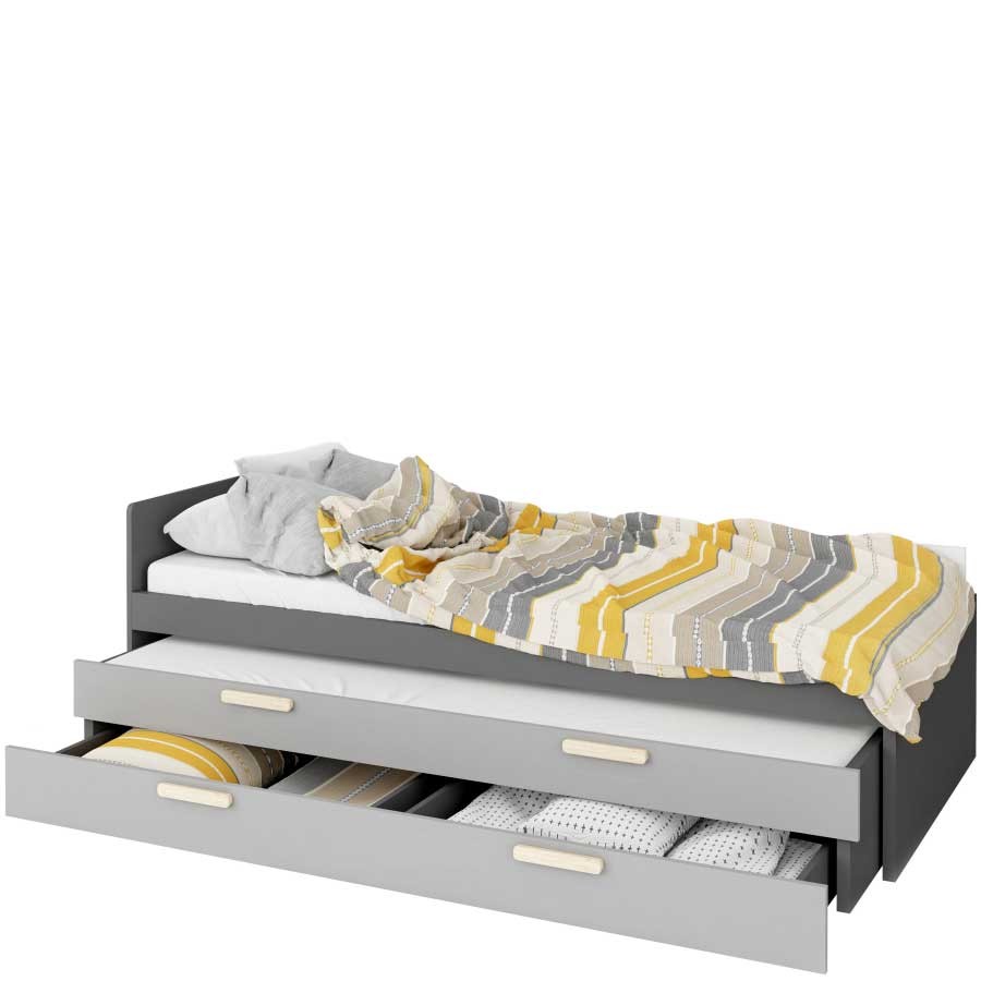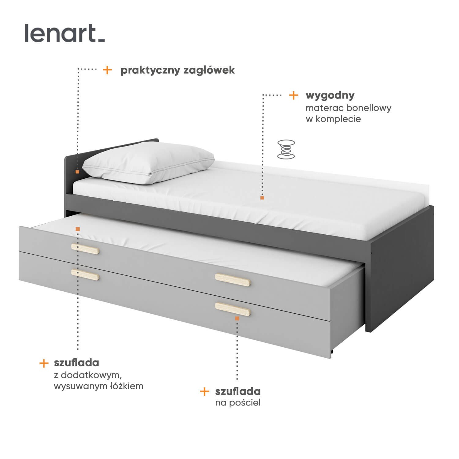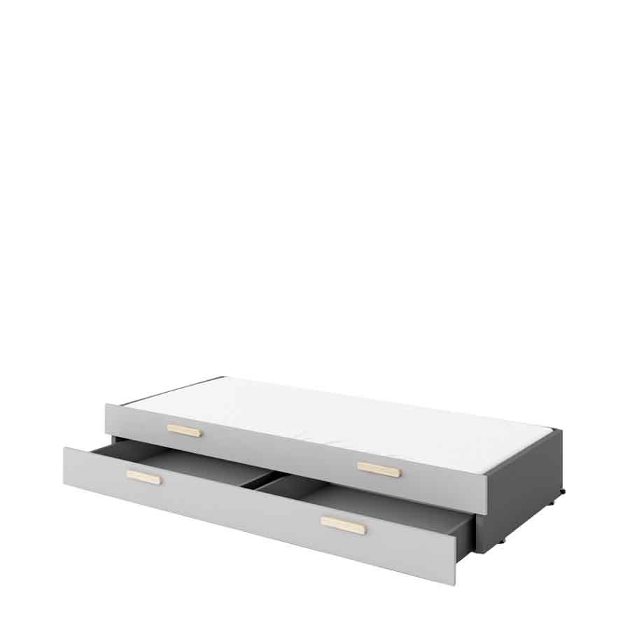 Łóżko dolne z materacem PO-14 - wyposażone zostało w drewniany stelaż pod materac, tworzący doskonałą wentylację oraz materac piankowy i szufladę na pościel lub inne podręczne przedmioty. POK PO-14 to model, który idealnie współgra z łóżkiem górnym POK PO-13.