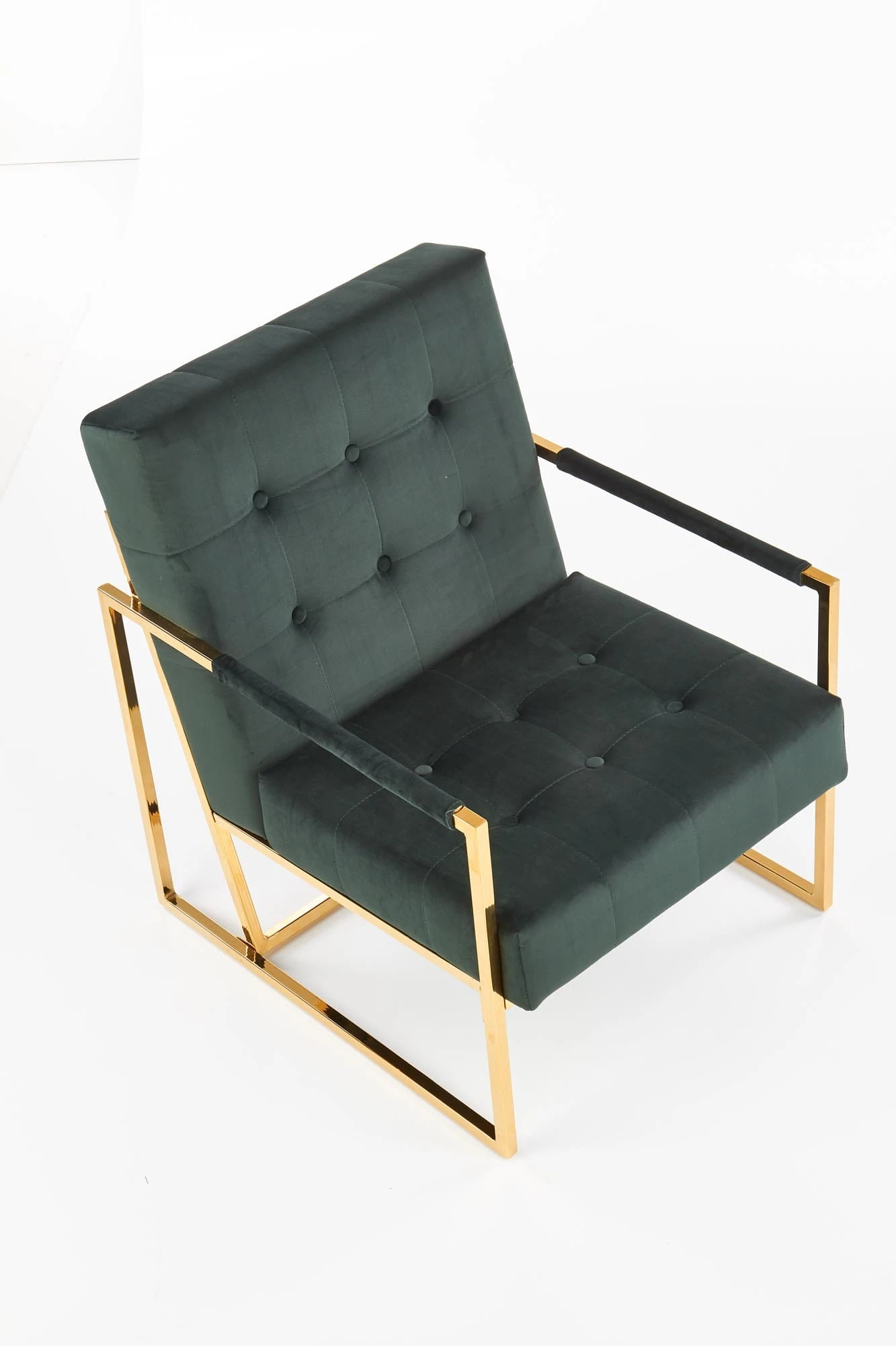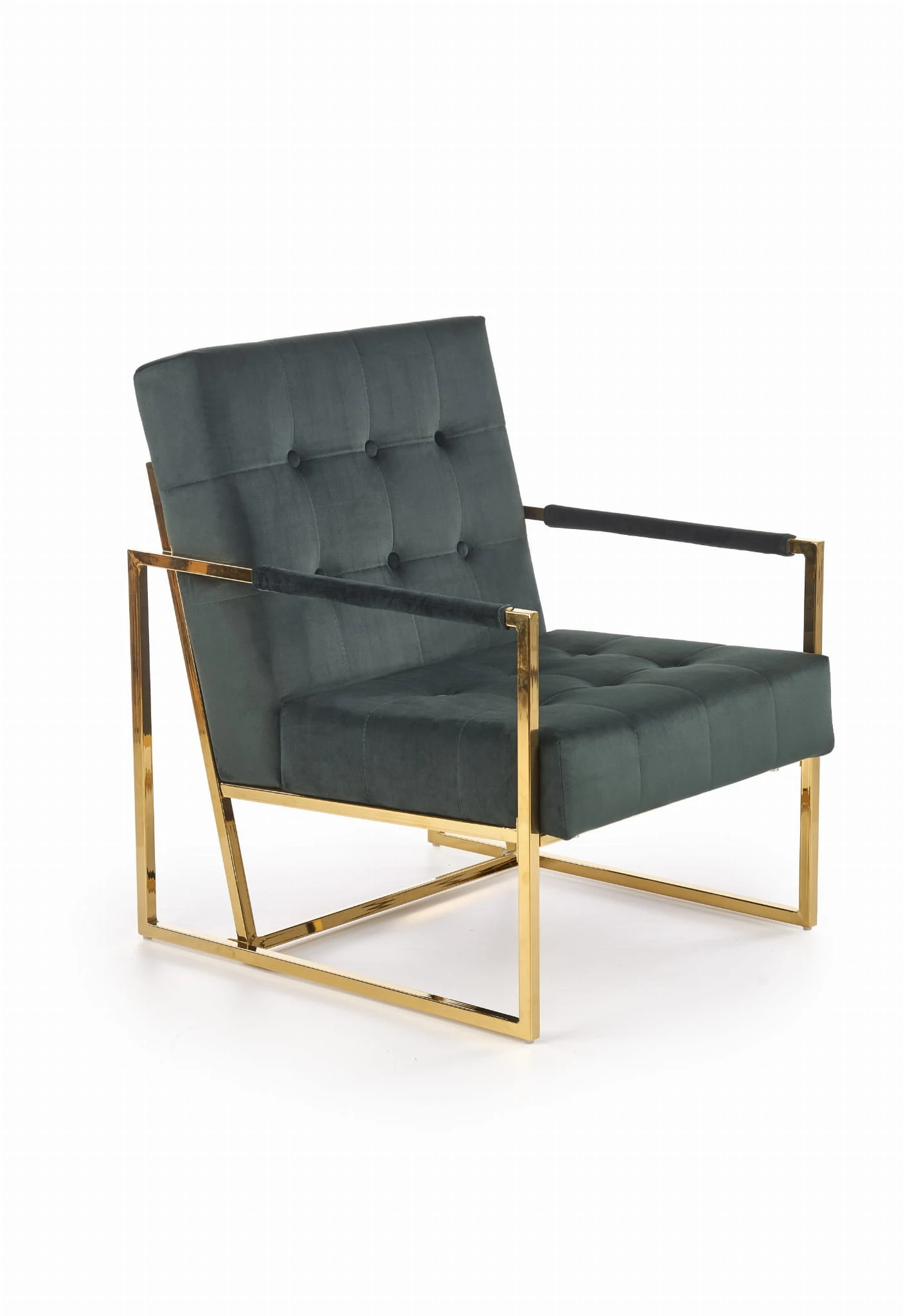 PRIUS fotel wypoczynkowy, tapicerka velvet- ciemny zielony, stelaż - złoty