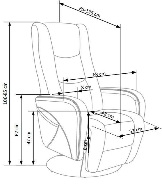 wymiary: 68/85-135/106-85 cm, fotel rozkładany z funkcją masażu, materiał: eco skóra / PVC, kolor: popiel