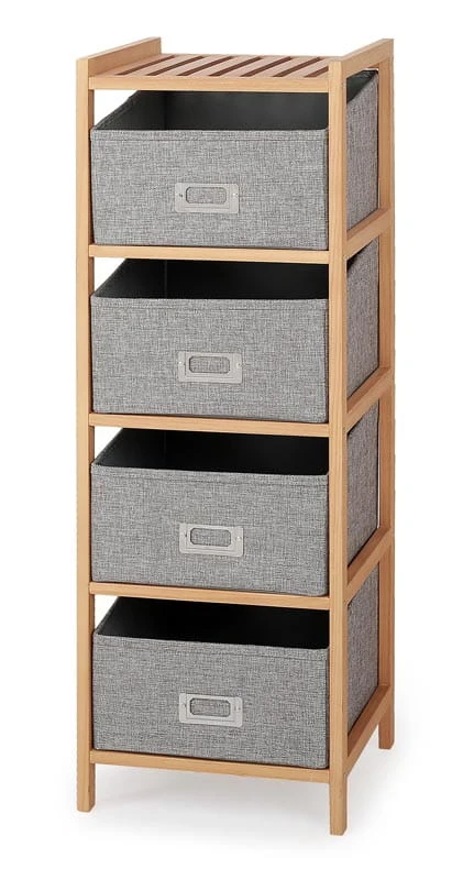 wymiary: 28/26/83 cm, materiał: drewno lite / tkanina, kolor: naturalny - popielaty