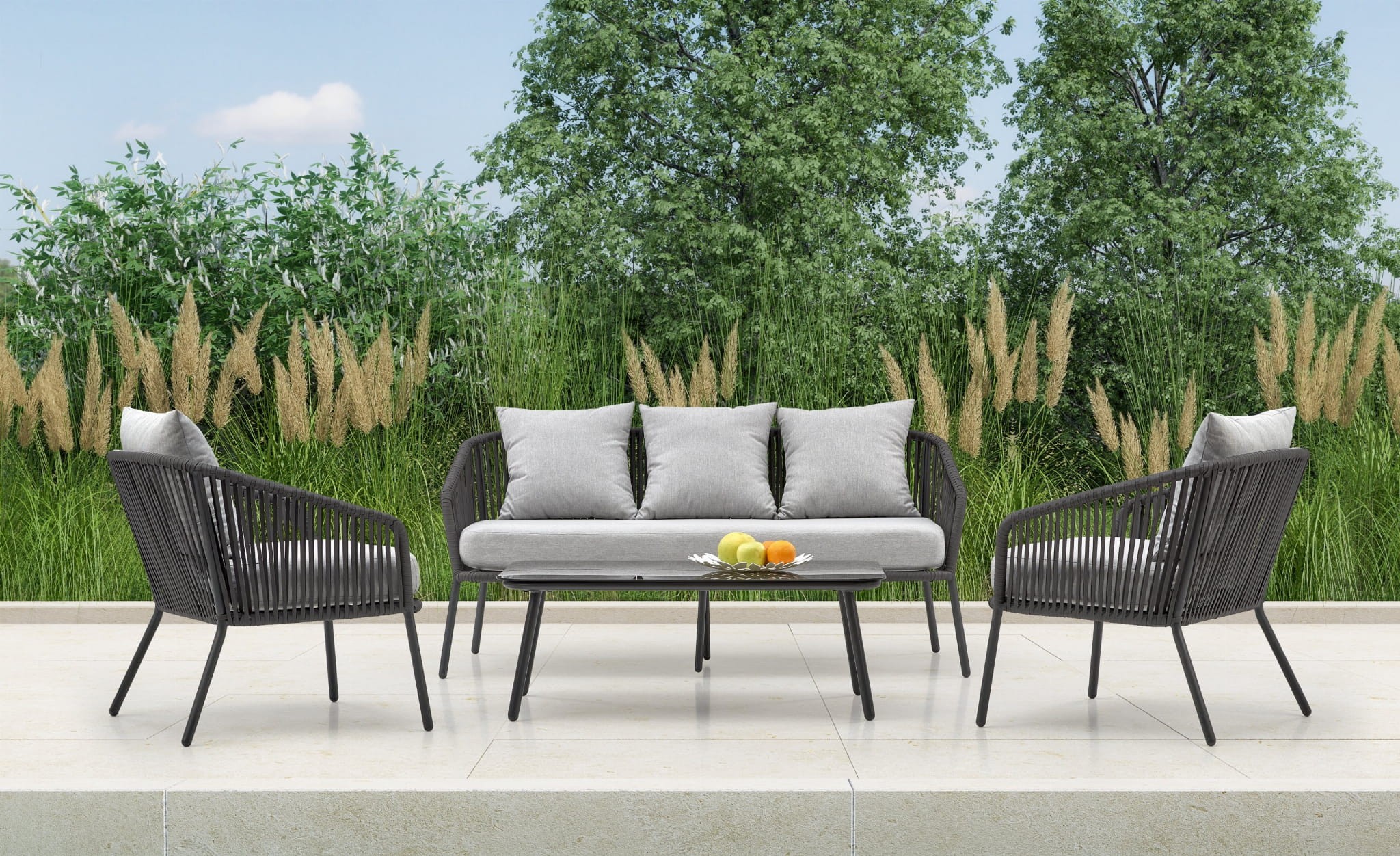 ROCCA zestaw ogrodowy ( sofa + fotel 2x + ława ), ciemny popiel / jasny popiel