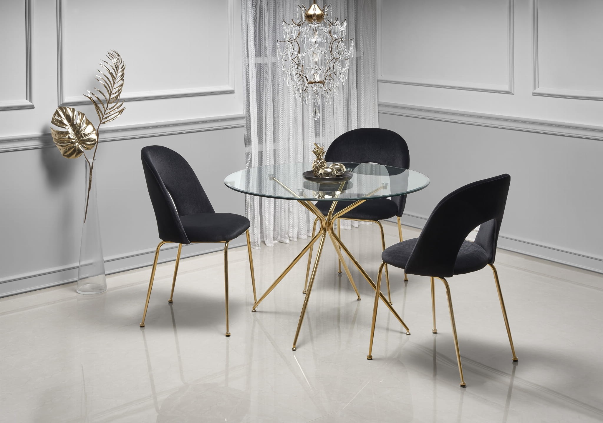 RONDO stół, blat - bezbarwny, nogi - złoty (2p=1szt)