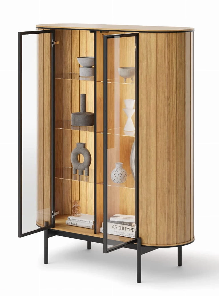 Witryna zaokrąglona RT-10 z kolekcji ROTTO to wyjątkowy mebel, który łączy nowoczesny design z praktycznym zastosowaniem. Jej charakterystyczna, obła forma nadaje wnętrzu lekkości i elegancji, a jednocześnie wyróżnia się na tle klasycznych, prostych brył.