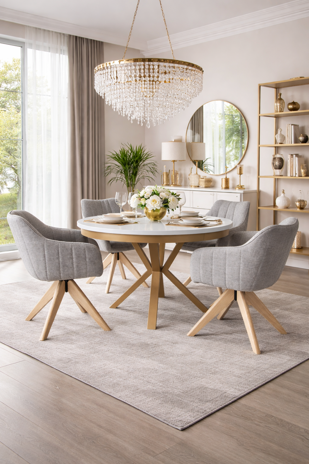 - ✔️ stół okrągły rozkładany – idealny do małych i dużych przestrzeni