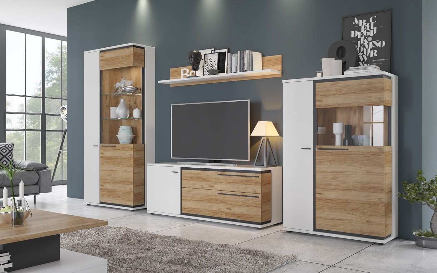 - Strefa dzienna jest przestrzenią, w której spędzamy czas w gronie domowników i gości. Część mieszkania lub domu, zawierająca meble i akcesoria, sprzyjające wypoczynkowi oraz rodzinnym posiłkom powinna wpisywać się w nasz gust oraz niezbędną funkcjonalność. Wysoka witryna z kolekcji Salinas to mebel, którego nie może zabraknąć w nowoczesnym, praktycznie urządzonym salonie oraz w emanującej rodzinnym ciepłem jadalni.