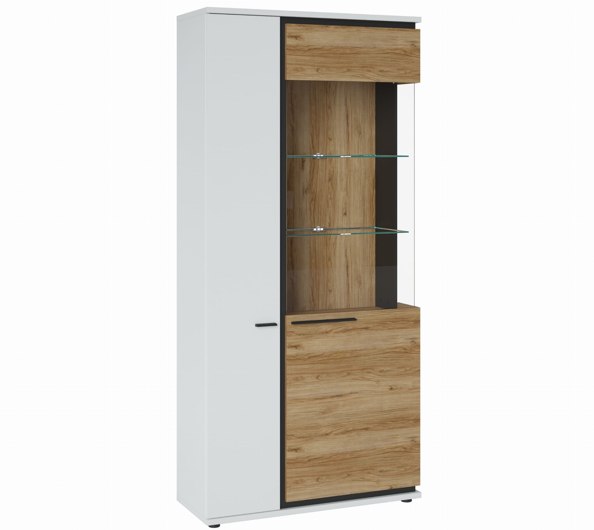 - Wykonane z odpornego na uszkodzenie szkła hartowanego elementy frontu i boku tworzą wrażenie lekkości pojemnej, wysokiej witryny Salinas. Doskonale prezentująca się w nowoczesnym oraz industrialnie urządzonym salonie lub jadalni witryna wysoka dostępna jest z frontami w kolorze Biel Alpejska i Dąb Catania.