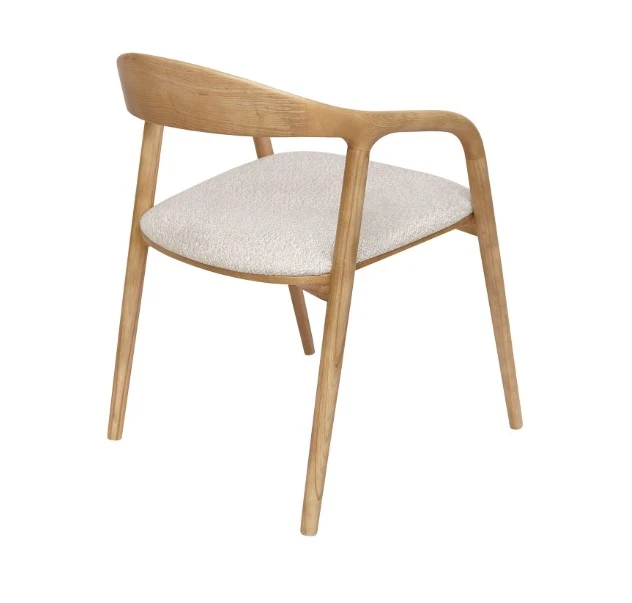 Najbardziej charakterystycznym elementem jest półokrągłe oparcie, które tworzy spójną, zamkniętą formę i delikatnie otula plecy. Dzięki temu krzesło wygląda elegancko z każdej strony – co ma duże znaczenie np. w otwartych salonach czy przy stołach ustawionych centralnie.