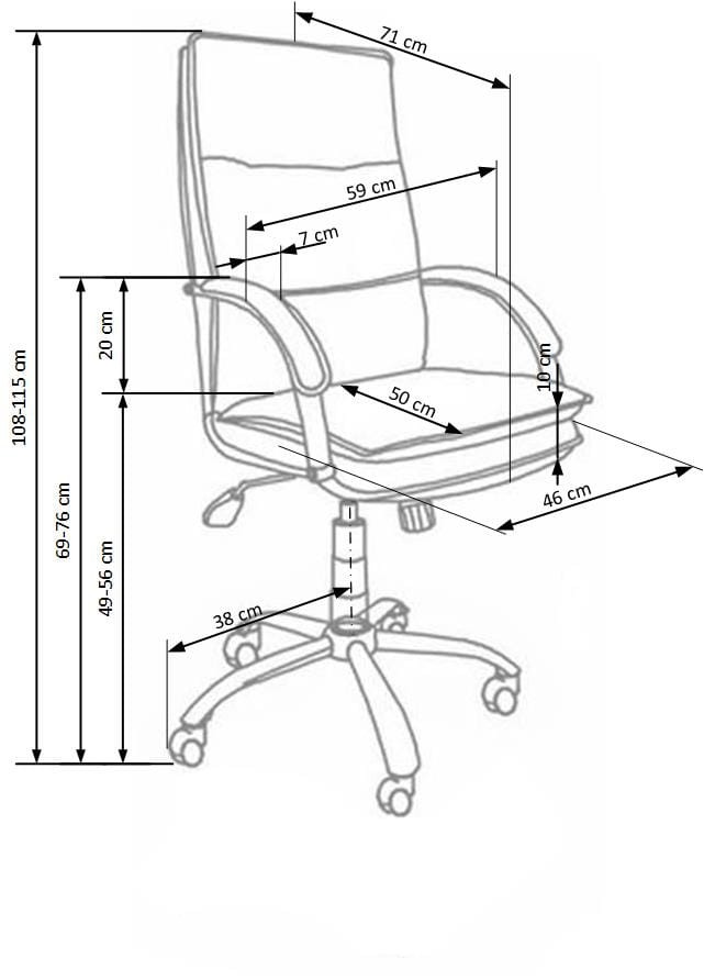mechanizm TILT, kółka powlekane kauczukiem, wymiary: 59/71/108÷115 cm, materiał: eco skóra, kolor: czarny