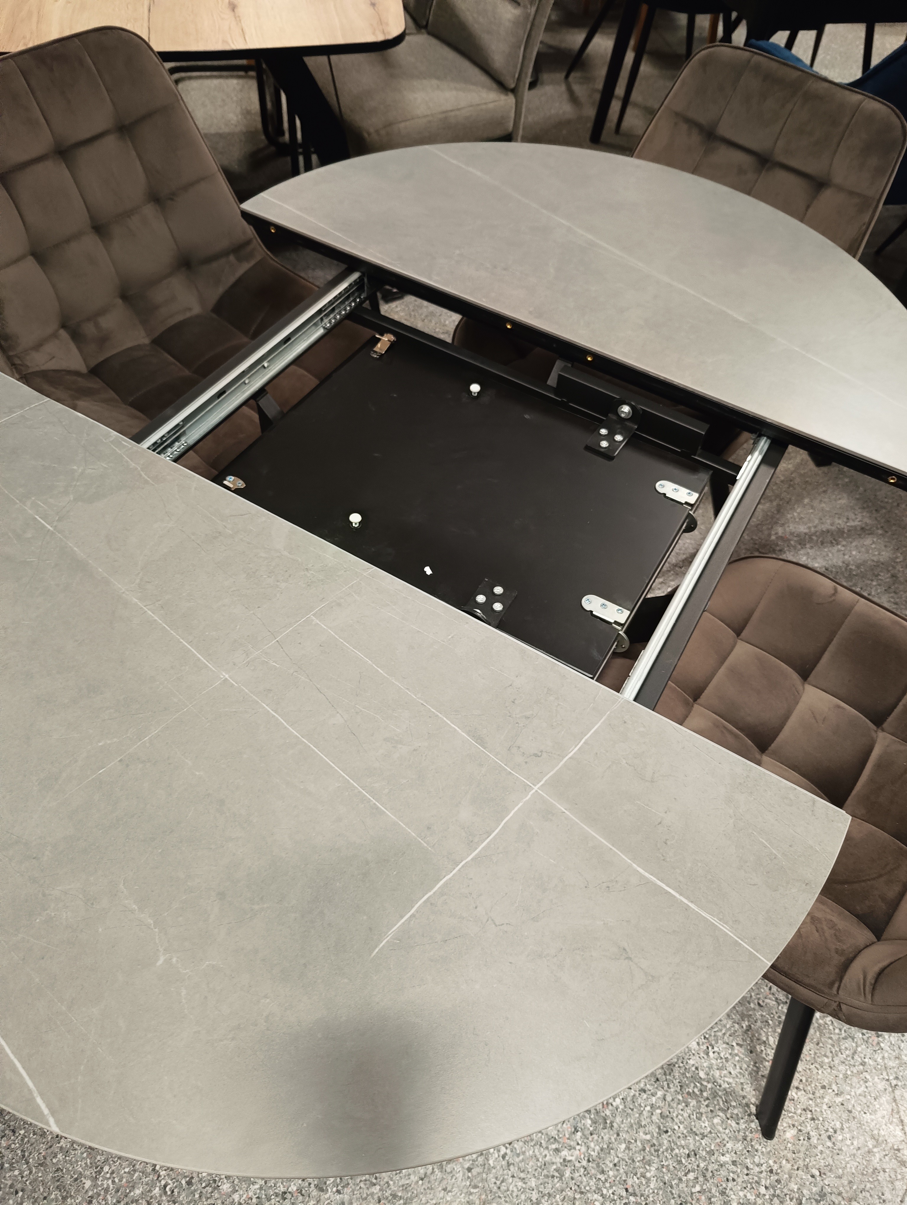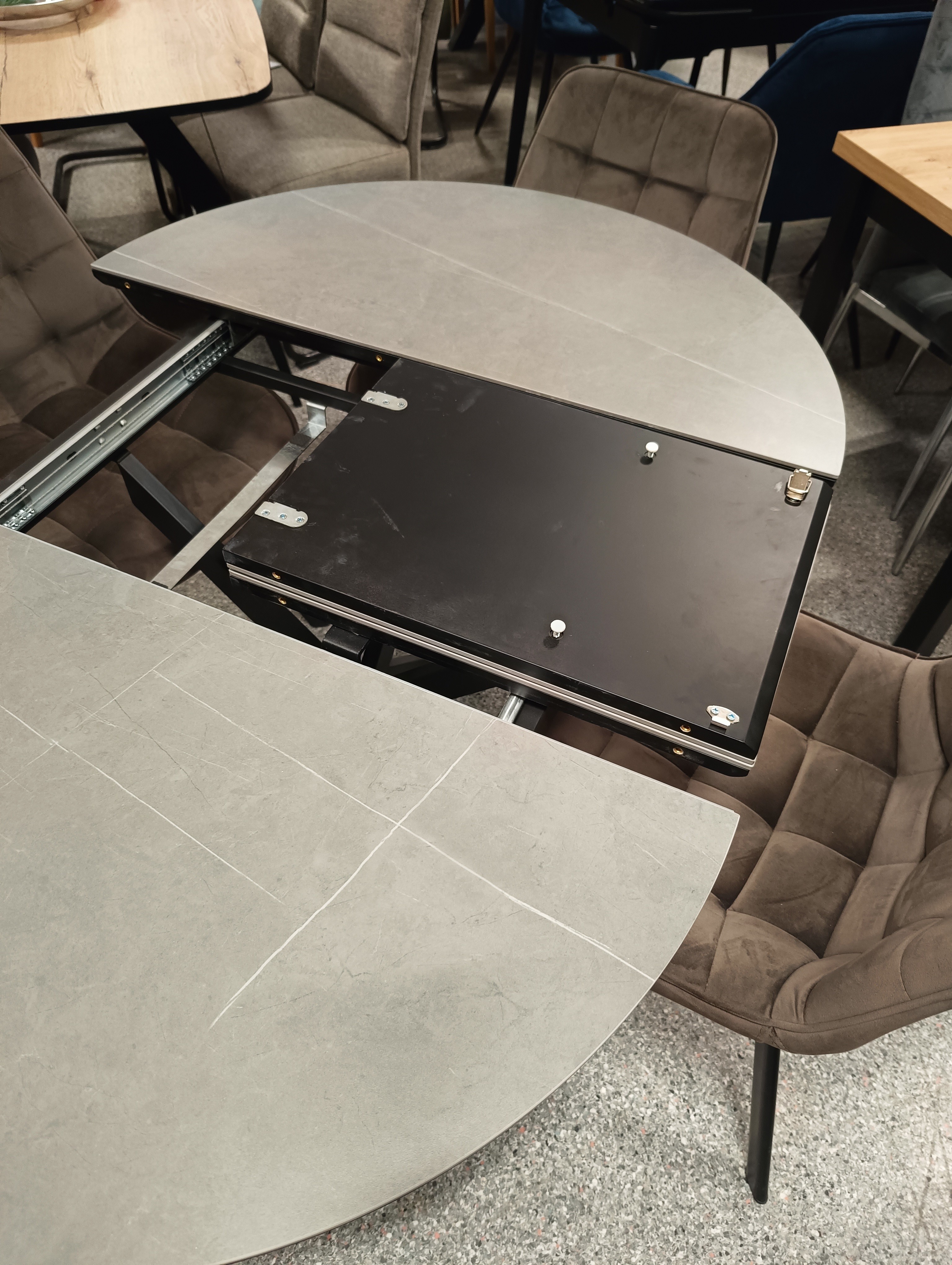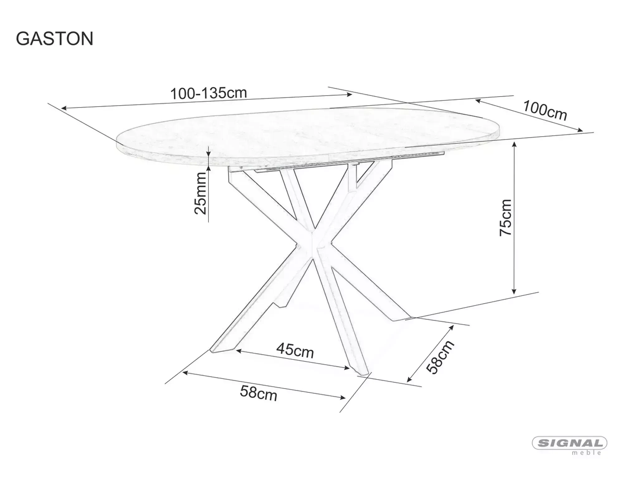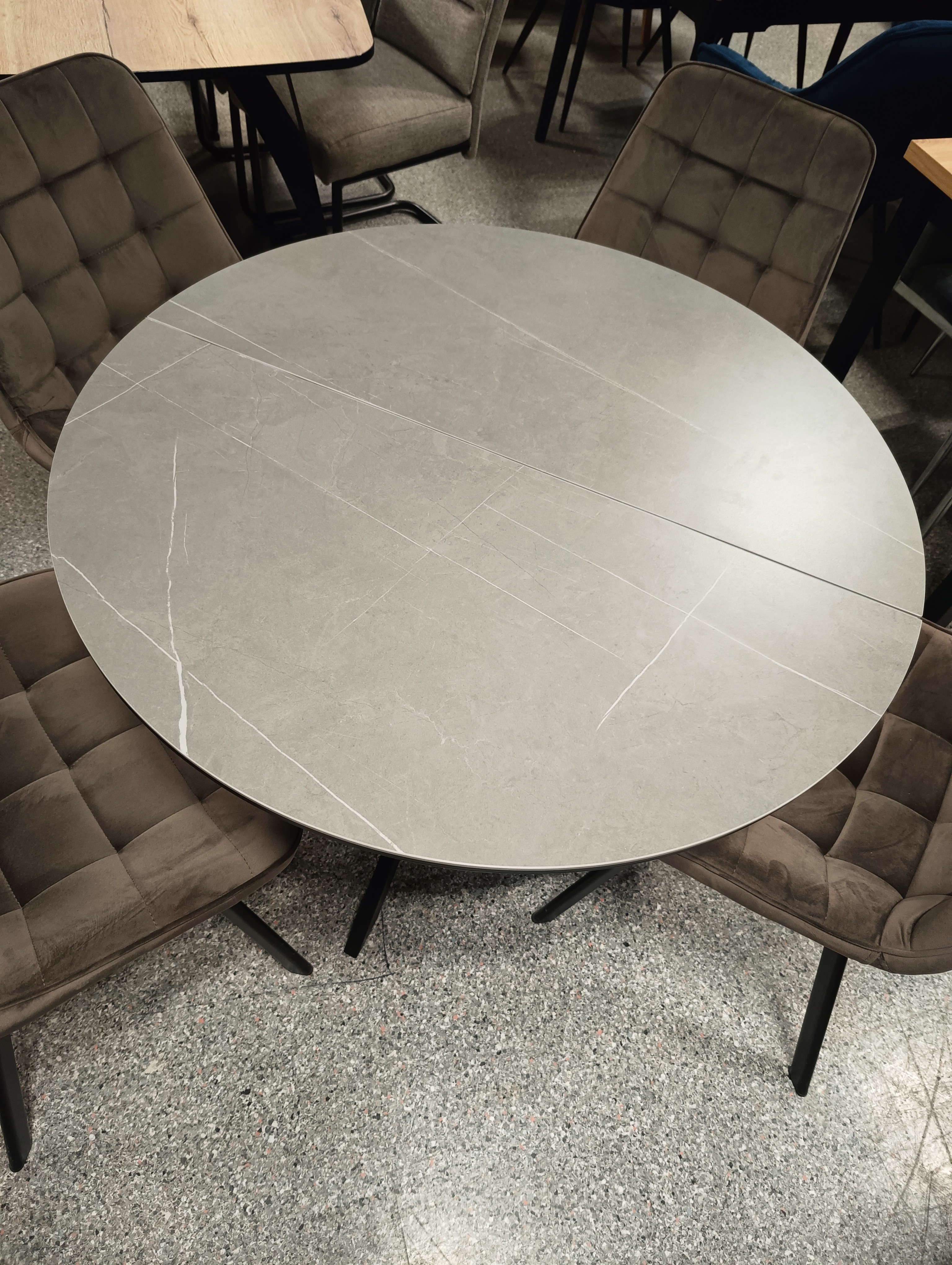 STÓŁ OKRĄGŁY GASTON CERAMIC SZARY MARMUR/ CZARNY 100(135)X100