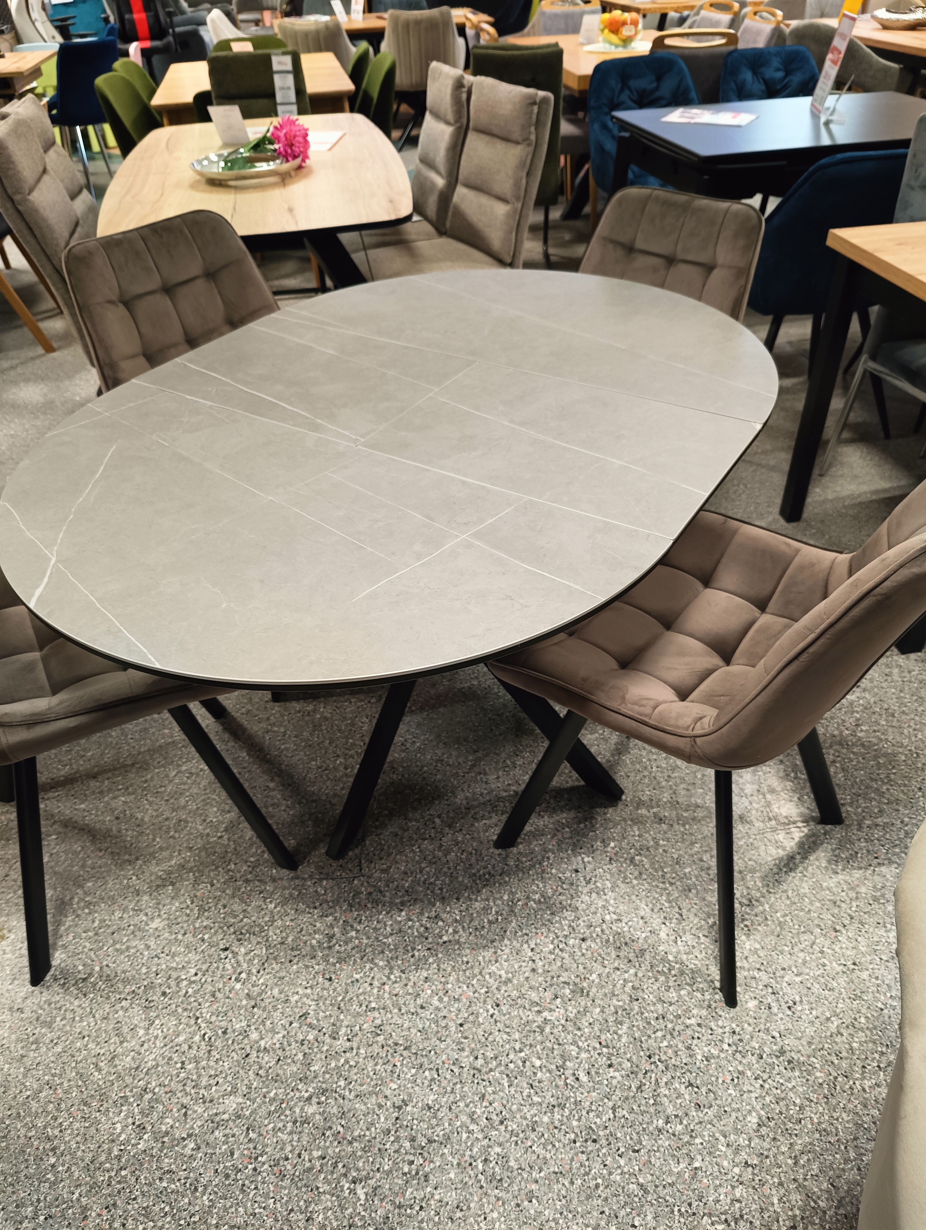 Stół Gaston Ceramic w wersji owalnej 140 cm – również z blatem ceramicznym (biały marmur, czarny marmur, szary marmur)