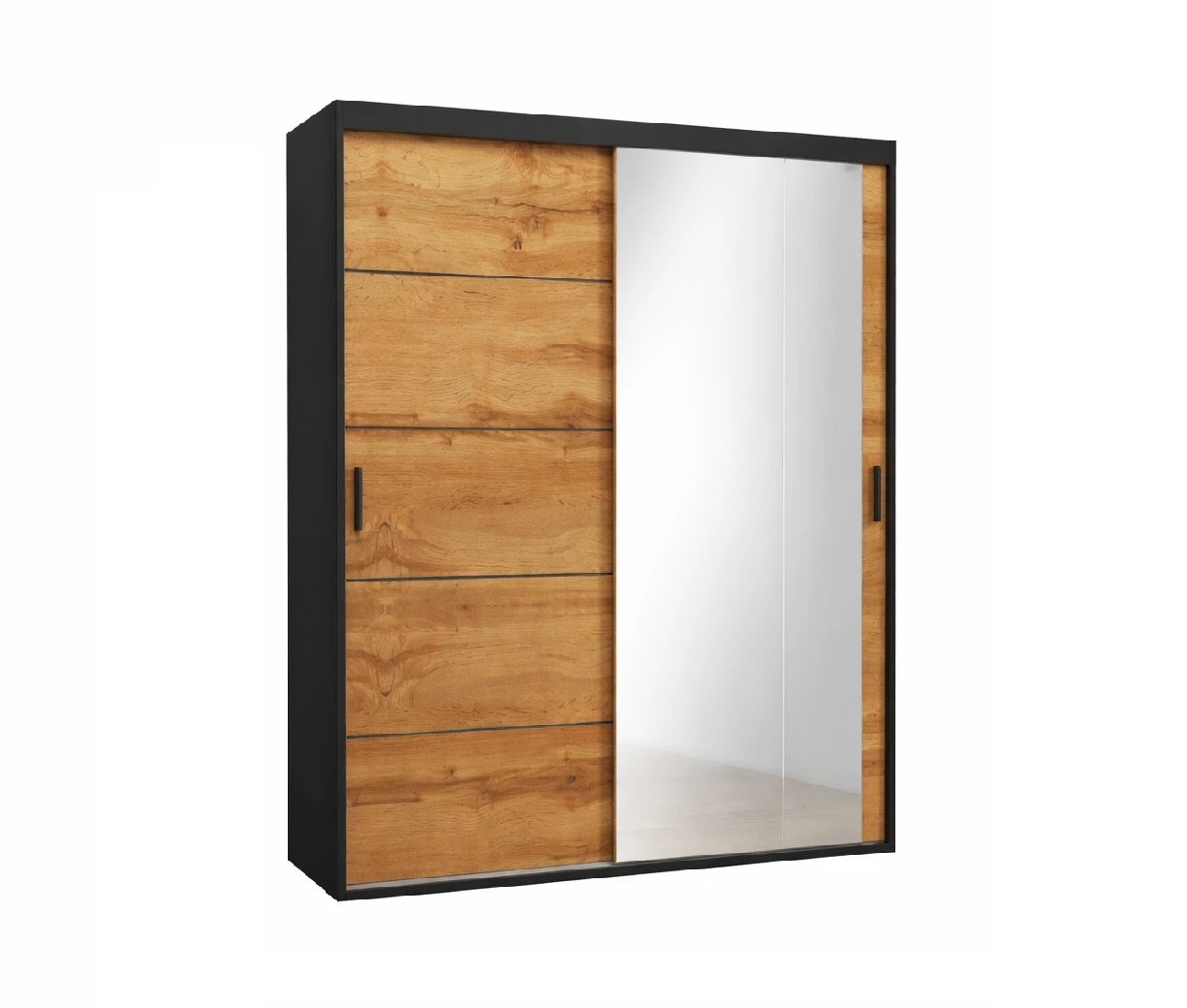 Dzięki zastosowaniu systemu drzwi przesuwnych szafa nie wymaga dodatkowej przestrzeni do otwierania, co czyni ją świetnym wyborem do mniejszych pomieszczeń.