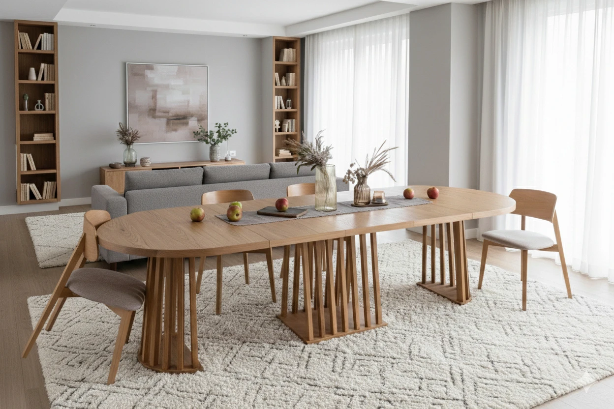 TAVO OVAL to owalny, rozkładany stół dębowy, który łączy elegancki wygląd z solidnym wykonaniem i wygodą użytkowania. To model uniwersalny – sprawdzi się na co dzień przy rodzinnych posiłkach, ale bez problemu poradzi sobie też podczas większych spotkań i uroczystości.