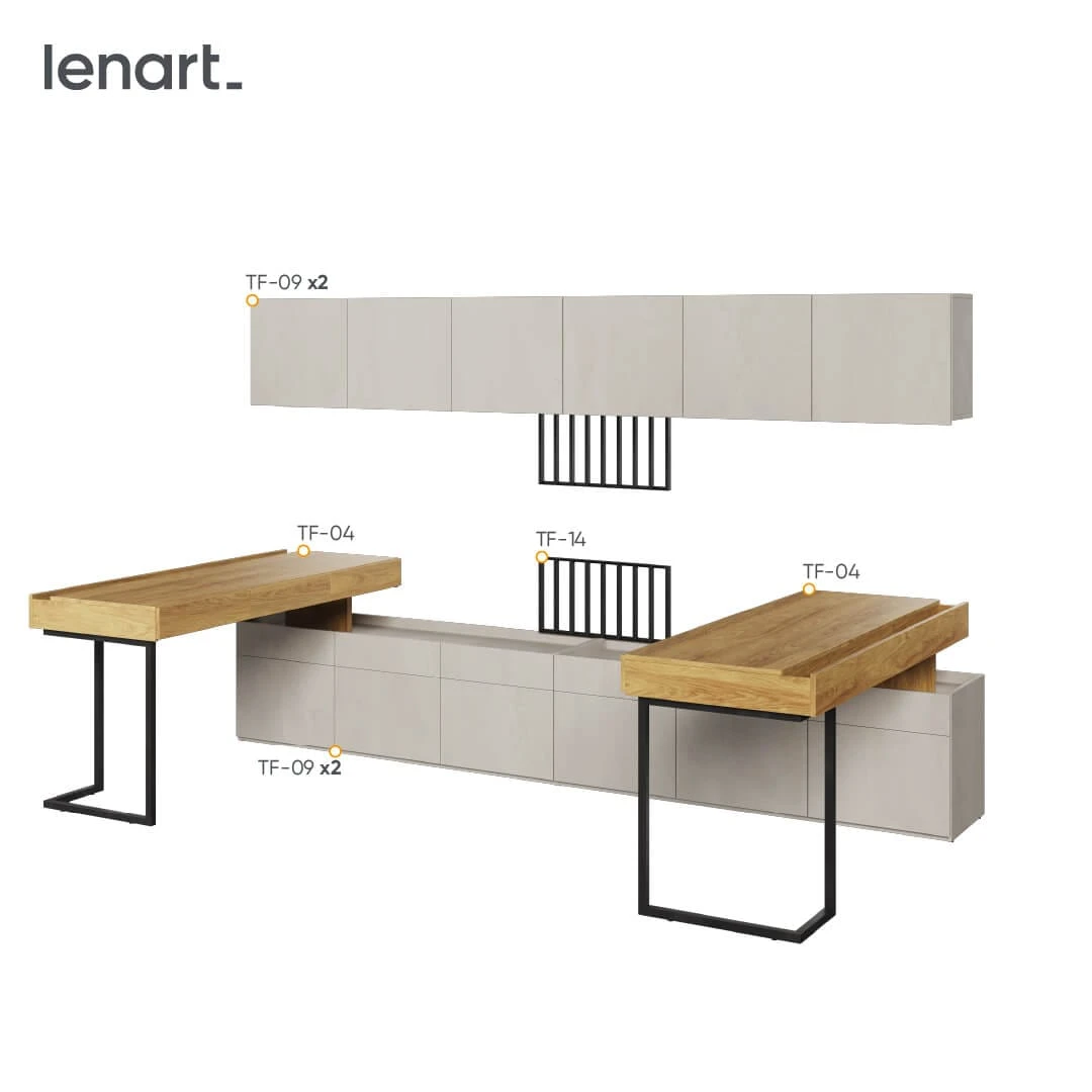 Komplet TEEN FLEX SET-06A został zaprojektowany z myślą o maksymalnym wykorzystaniu przestrzeni. W skład zestawu wchodzi biurko młodzieżowe, nadstawka, szafki wiszące, półka, panele TV oraz funkcjonalna szafka – wszystko, czego potrzebuje nastolatek do nauki, przechowywania i codziennego odpoczynku. To idealne meble do pokoju młodzieżowego, które pomagają utrzymać porządek i dobrą organizację przestrzeni.