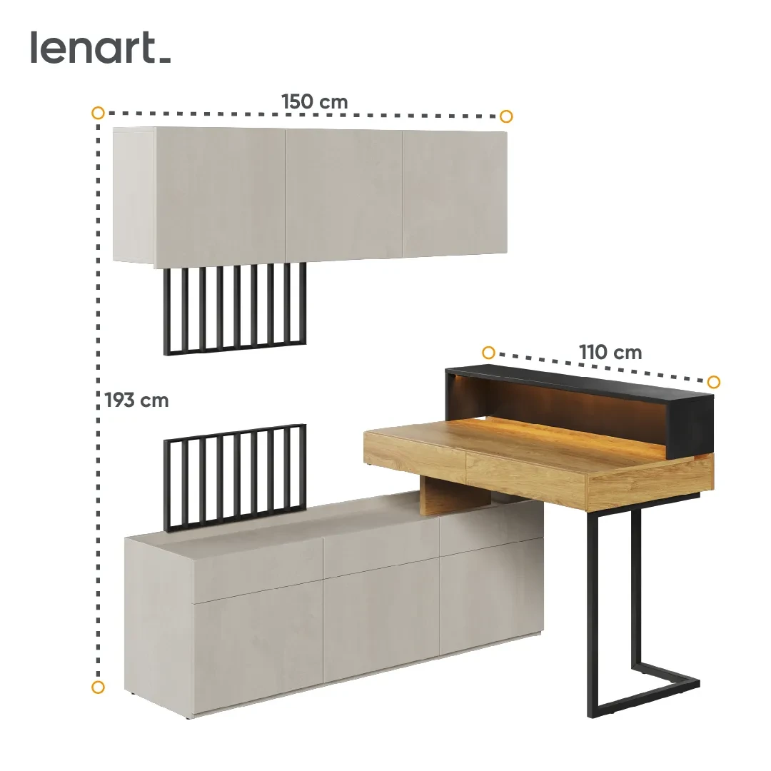 Komplet TEEN FLEX SET-07 został zaprojektowany z myślą o maksymalnym wykorzystaniu przestrzeni. W skład zestawu wchodzi biurko młodzieżowe, nadstawka, szafki wiszące, półka, panele TV oraz funkcjonalna szafka – wszystko, czego potrzebuje nastolatek do nauki, przechowywania i codziennego odpoczynku. To idealne meble do pokoju młodzieżowego, które pomagają utrzymać porządek i dobrą organizację przestrzeni.