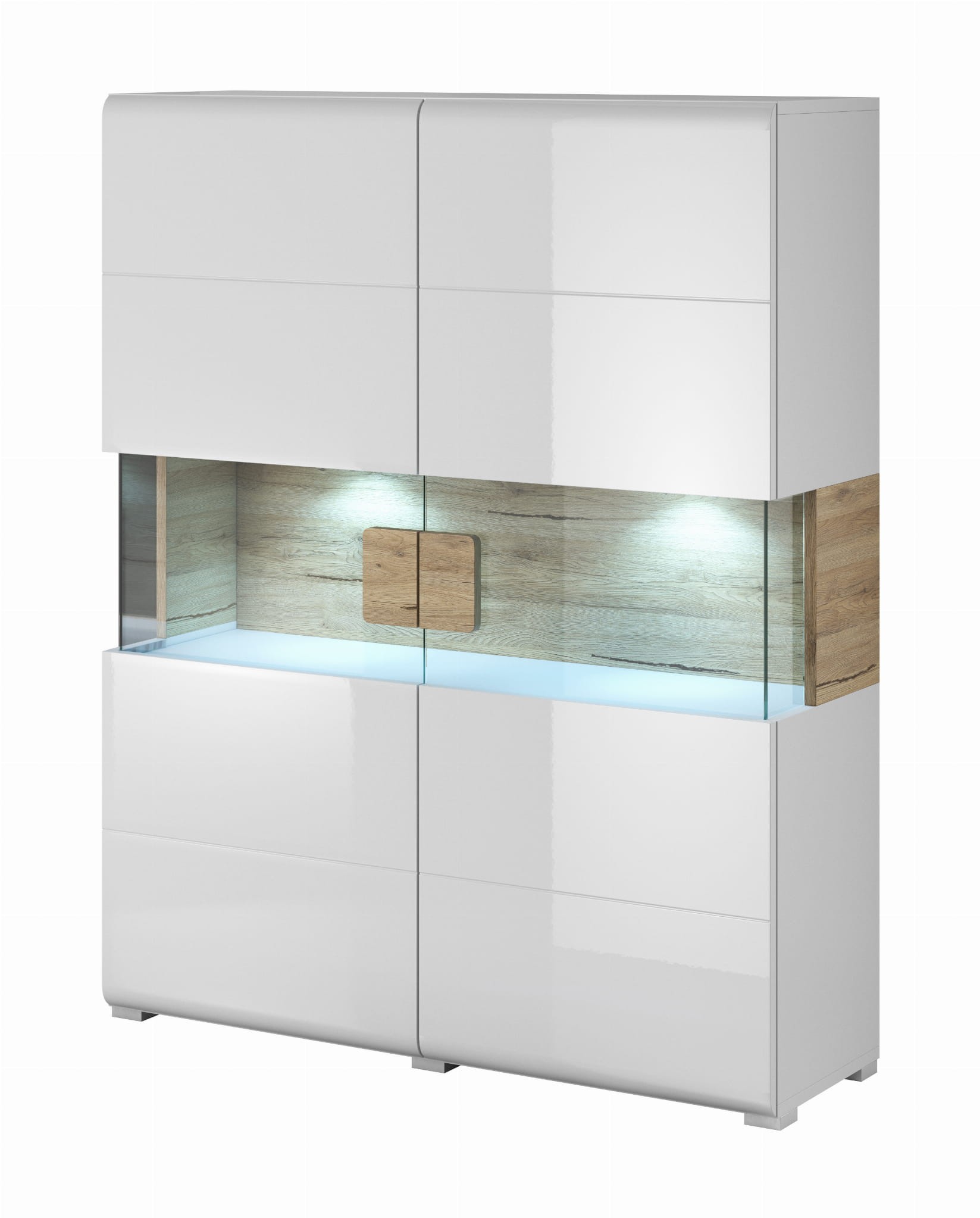 TOLEDO to kolekcja mebli o różnej wielkości witrynach, pakowanych komodach i szafkach RTV dzięki którym umeblujesz swój salon lub pokój dzienny. Designerskie połączenia kolorów oraz przeszklenia nadają meblowi niepowtarzalny styl. Fronty MDF wykończone folią membranową o wysokim połysku tworzą połączenie wytrzymałości z aktualnymi trendami wnętrzarskimi.