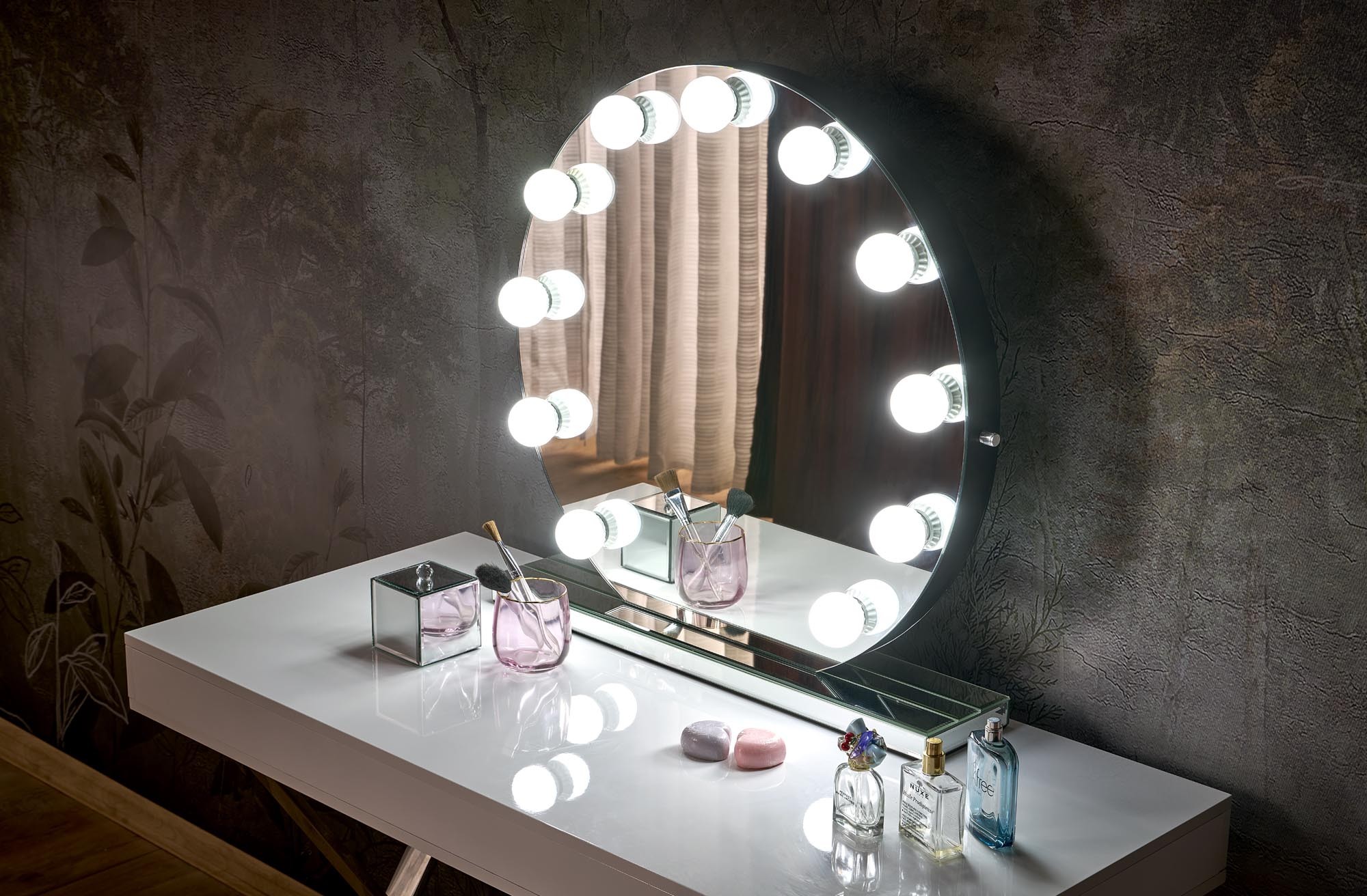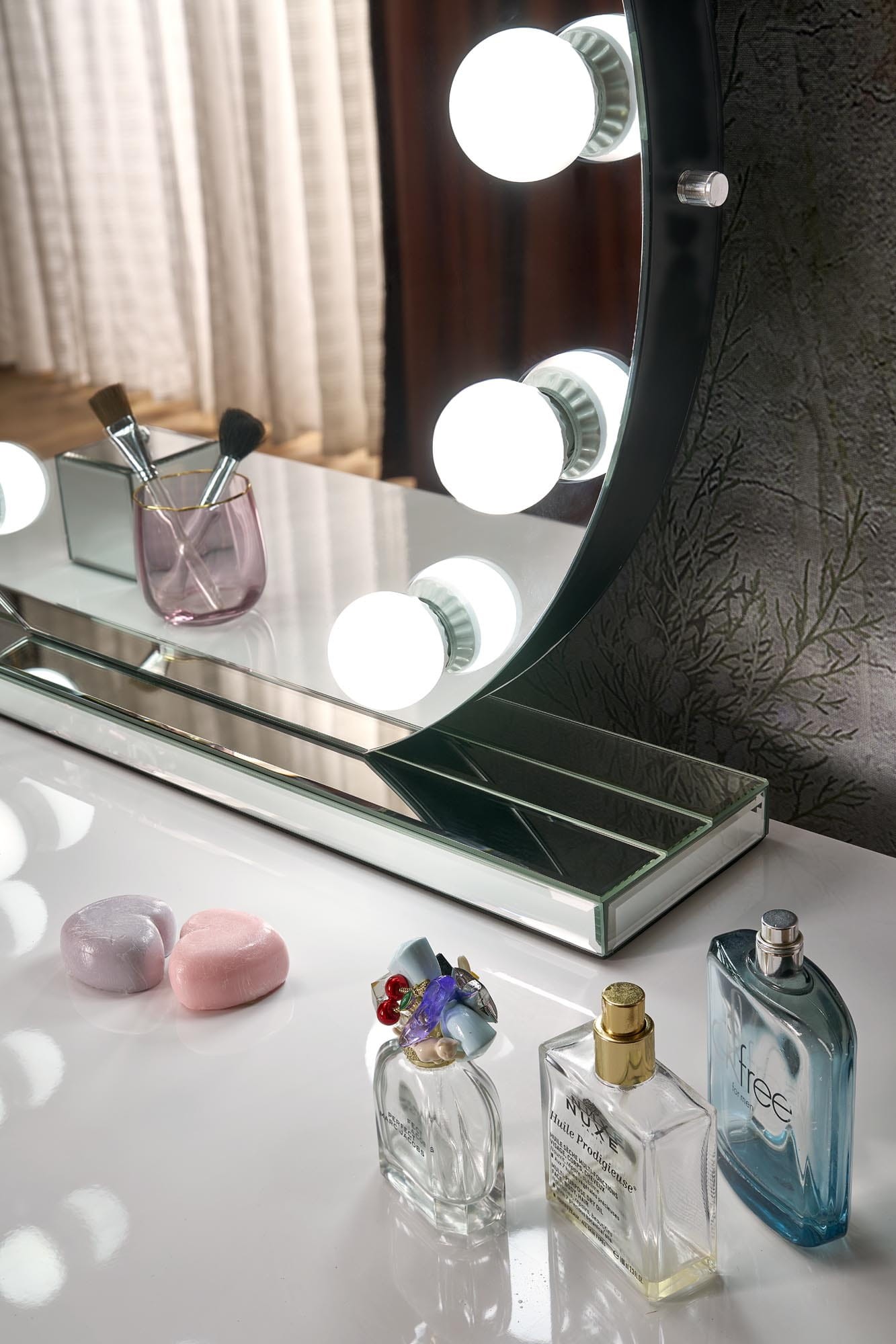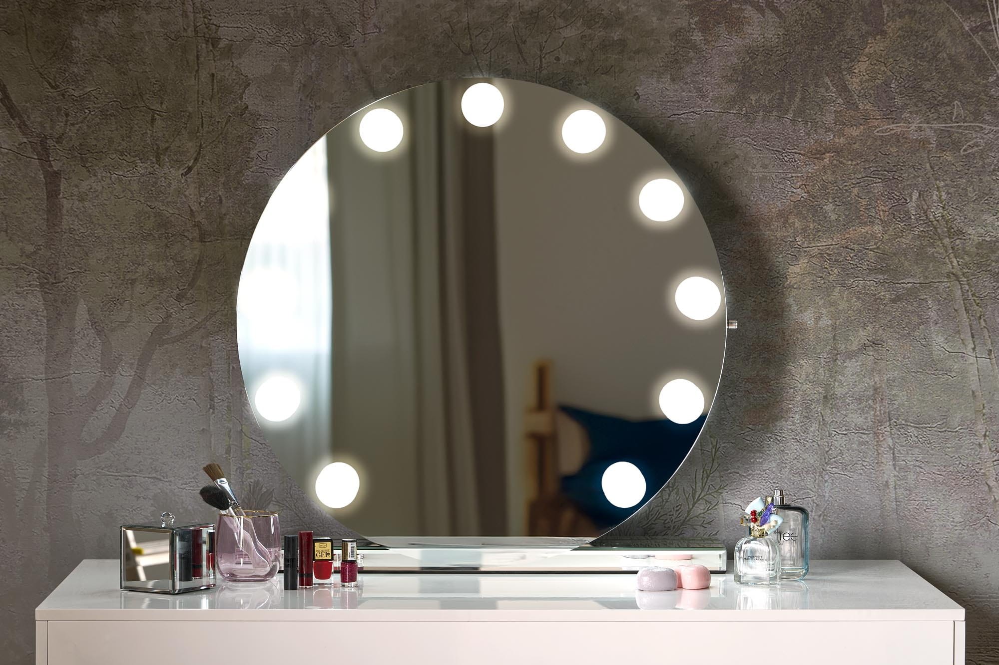 lustro stołowe, wymiary: 70/70/6,5 cm, materiał: bez ramy / podkład - płyta MDF / żarówki LED / lustro, kolor: srebrny
