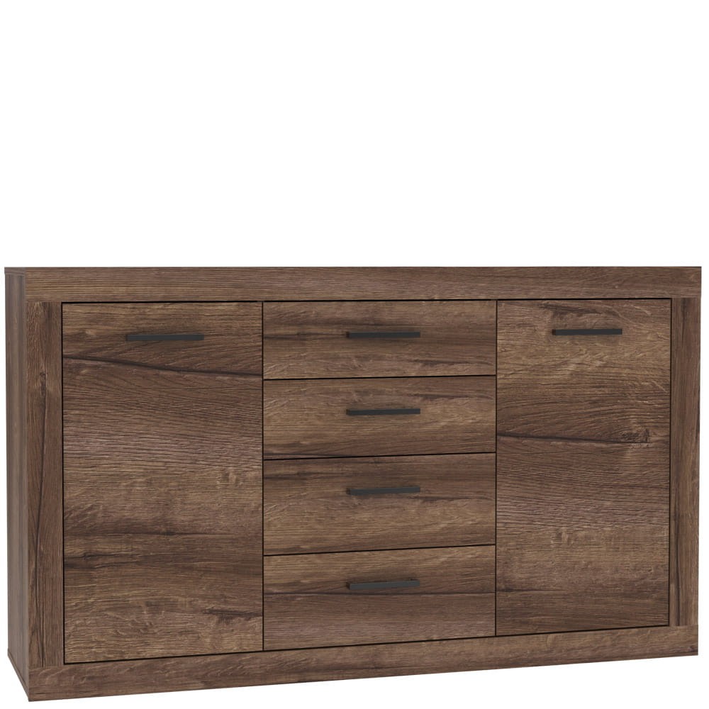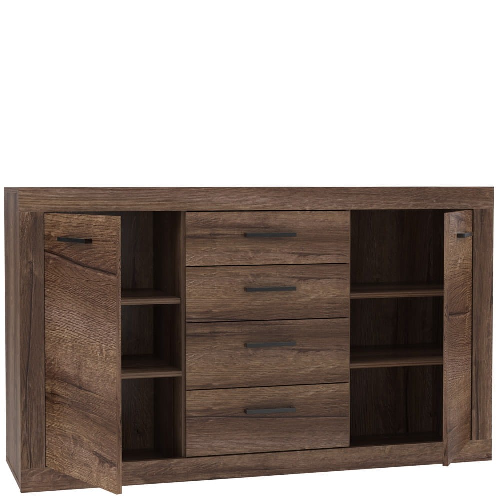 Kolekcja TRASS wychodzi na przeciw oczekiwaniom miłośnikom ciemnych dekorów w meblach. Połączenie brązowego dębu szlachetnego z dębem czarnym tworzy elegancką propozycję do umeblowania salonu lub jadalni. Szeroki wybór elementów (witryny, komody, szafy, półki itd.) sprawia, że z łatwością zaaranżujesz nimi zarówno nieduży pokój jak i duży salon. Atutem mebli jest ich funkcjonalność oraz ponadczasowość.