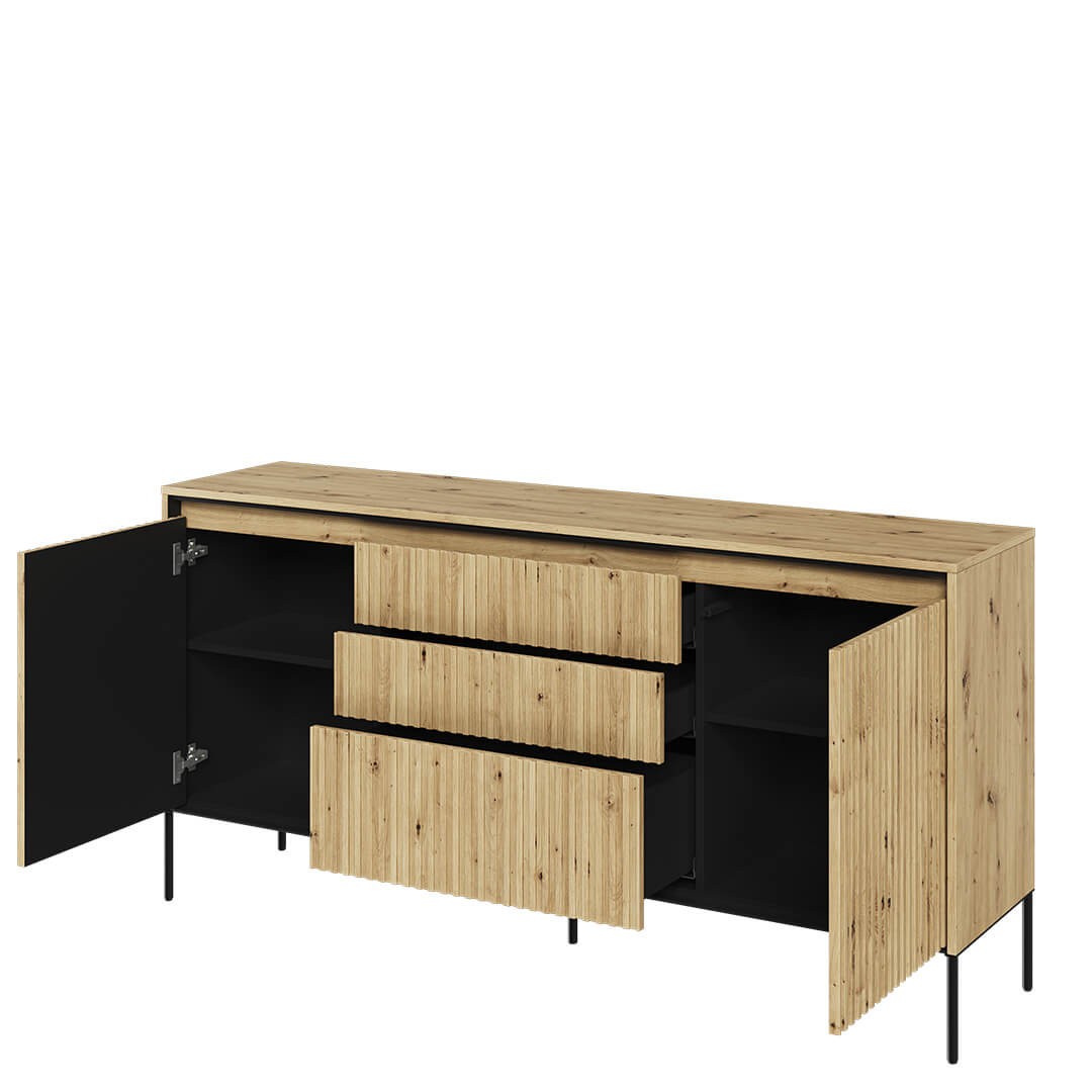 Marzysz o nowoczesnej i stylowej komodzie, która stanie się głównym elementem Twojego salonu? Nasza szara komoda spełni Twoje oczekiwania i wniesie do Twojej przestrzeni niepowtarzalny urok! Komoda szara z kolekcji TREND to połączenie funkcjonalności, estetyki i solidnego wykonania. Jej wyjątkowy design i ryflowane fronty nadają meblowi wyrazisty charakter. Komoda to nie tylko praktyczne miejsce do przechowywania, ale również element dekoracyjny. Jej trzy pojemne szuflady i przestronne półki zapewnią Ci odpowiednią ilość miejsca na przechowywanie różnych przedmiotów, takich jak książki, naczynia czy dekoracje. Jej uniwersalny design sprawia, że łatwo znajdziesz dla niej odpowiednie miejsce i stworzysz spójną kompozycję w swoim wnętrzu. Nasza szara komoda to doskonały wybór nie tylko do salonu, ale również sypialni czy przedpokoju. Jej neutralny kolor idealnie współgra z różnymi stylami aranżacji, od nowoczesnego po industrialny czy skandynawski. Możesz ją umieścić przy ścianie, pod telewizorem lub w dowolnym miejscu, które podkreśli funkcjonalność i estetykę Twojego wnętrza. Nie tylko jej wygląd przyciąga uwagę, ale również solidne wykonanie. Została wykonana z wysokiej jakości materiałów, co zapewnia trwałość i długotrwałą satysfakcję z użytkowania. Możesz być pewien, że mebel ten posłuży Ci przez wiele lat, zachowując swój pierwotny wygląd i funkcjonalność. Komoda  pozwala na przechowywanie i uporządkowanie różnych przedmiotów, tak aby Twój salon był zawsze schludny i estetyczny. To nie tylko komoda, to mebel, który doda Twojemu salonowi stylu i funkcjonalności.