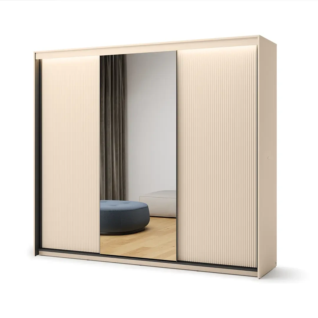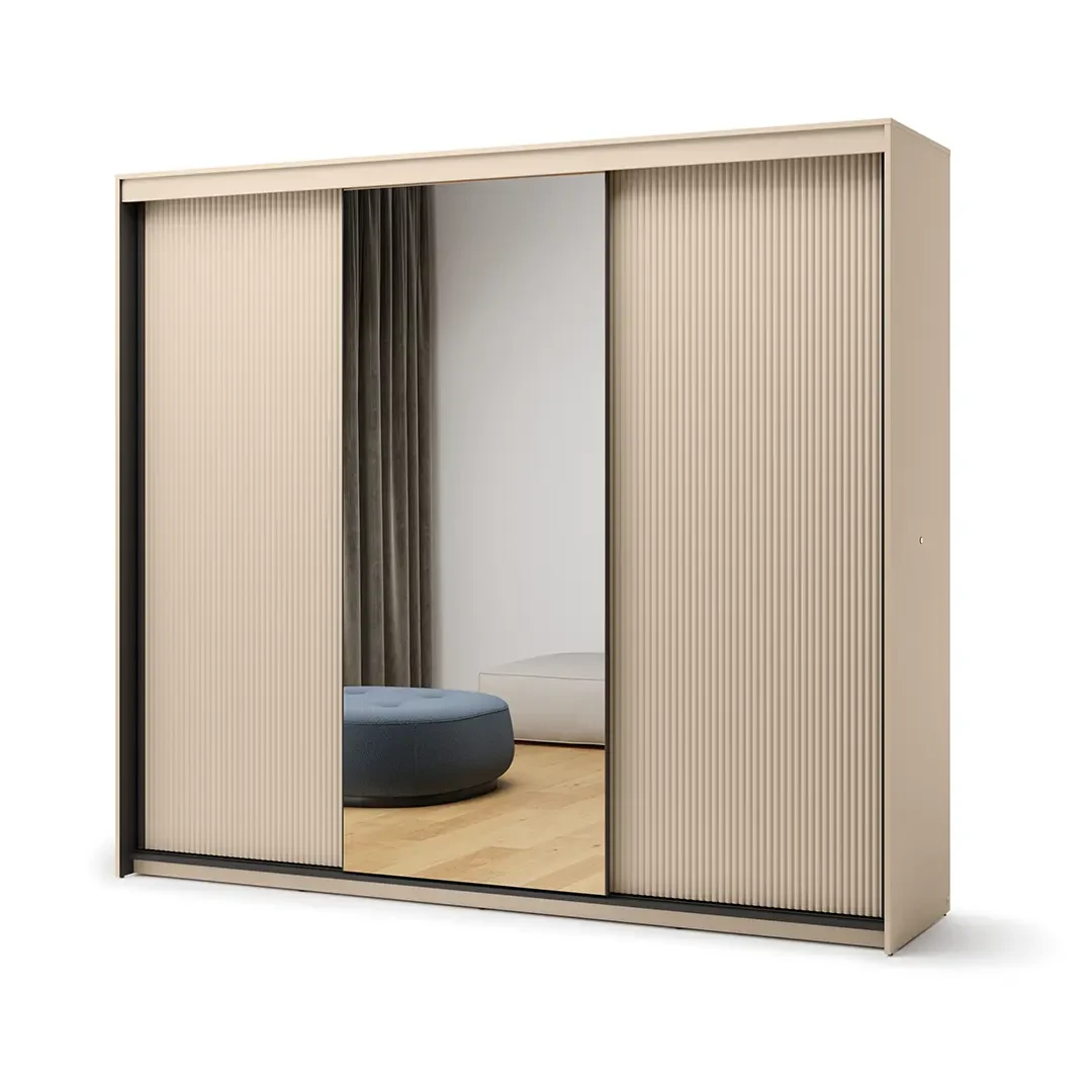 Szafa do sypialni z ryflowanymi frontami, lustrem i drzwiami przesuwnymi