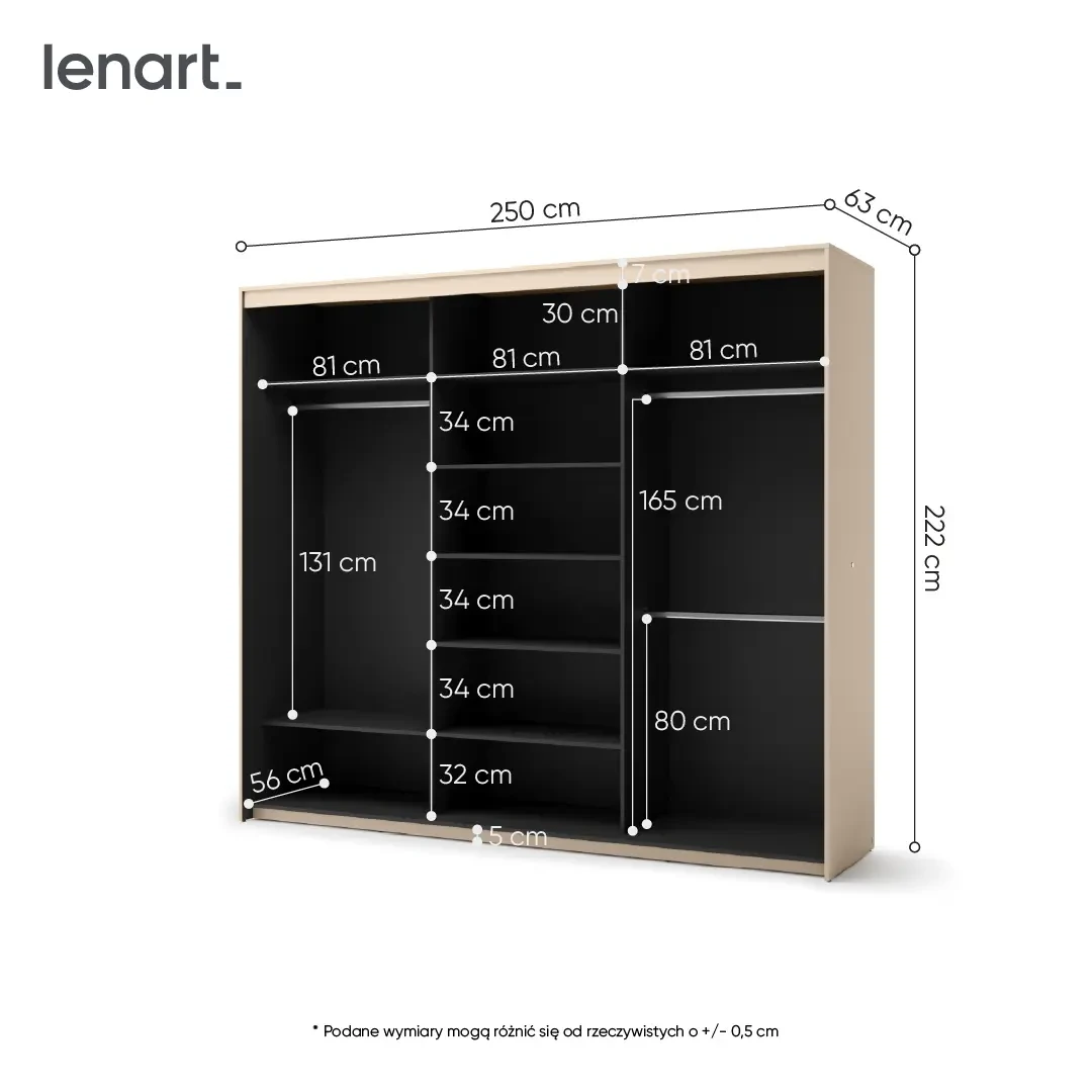 • Funkcjonalne wnętrze – przestronne półki, drążki na ubrania i przemyślany układ pozwalają utrzymać idealny porządek.