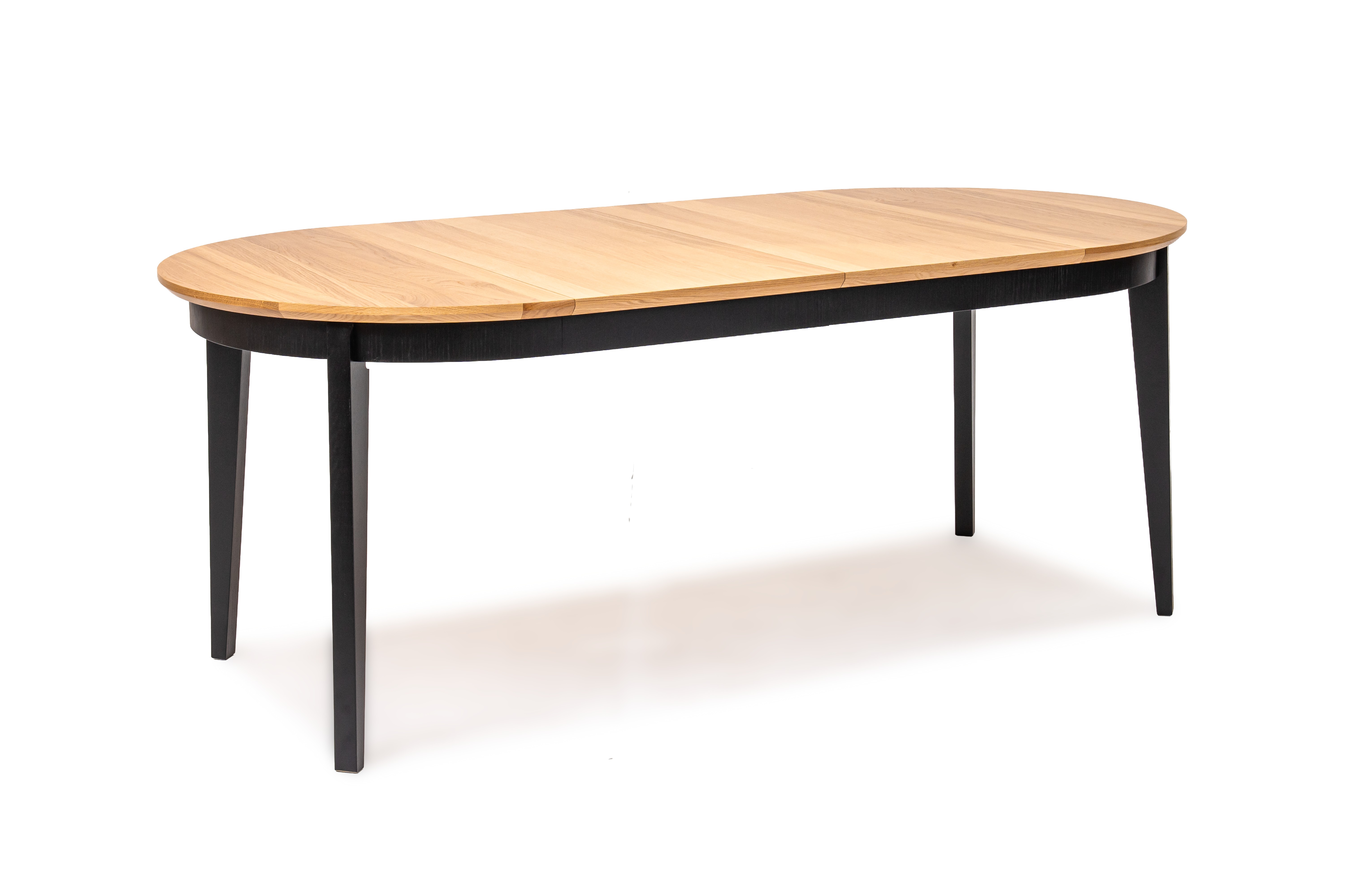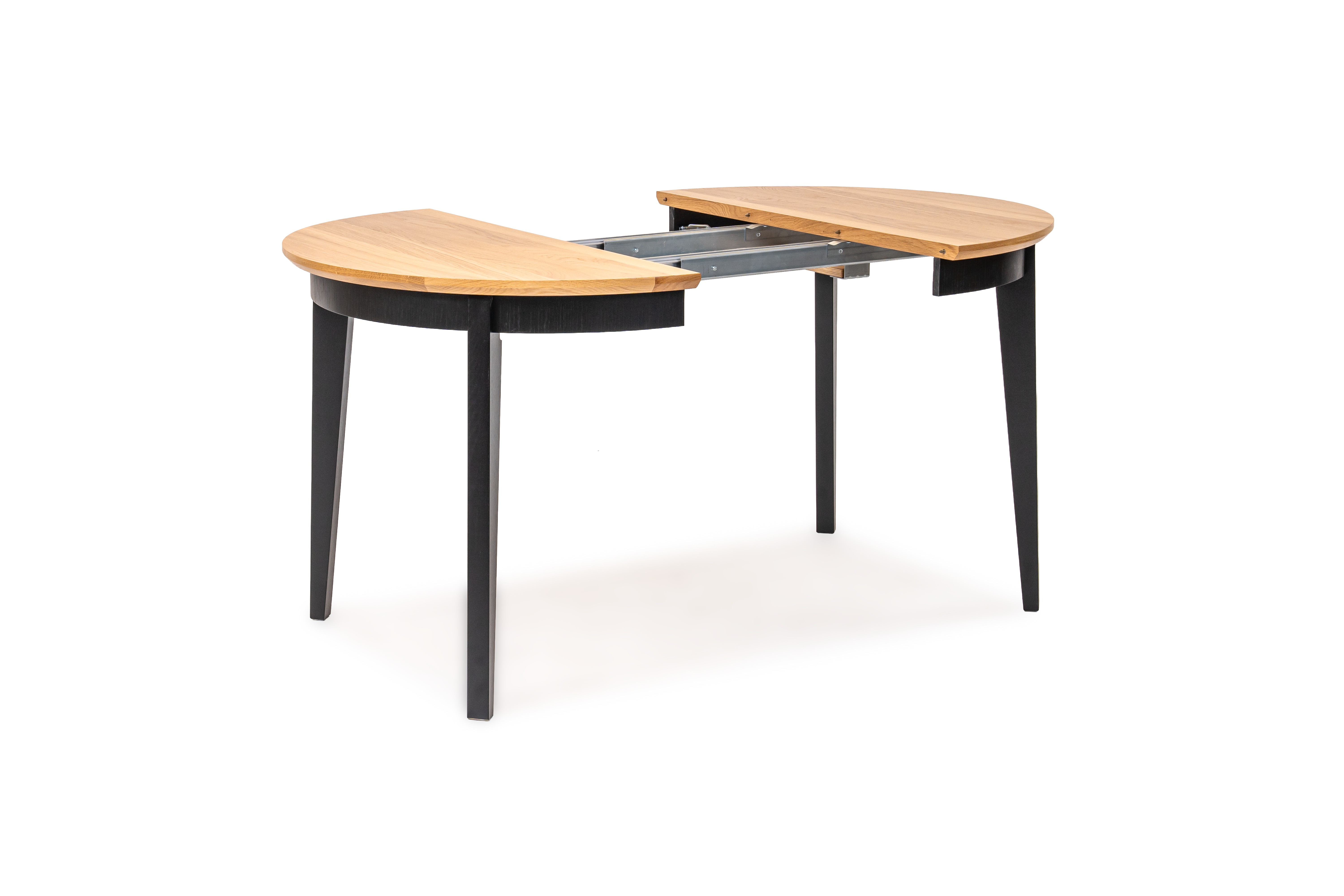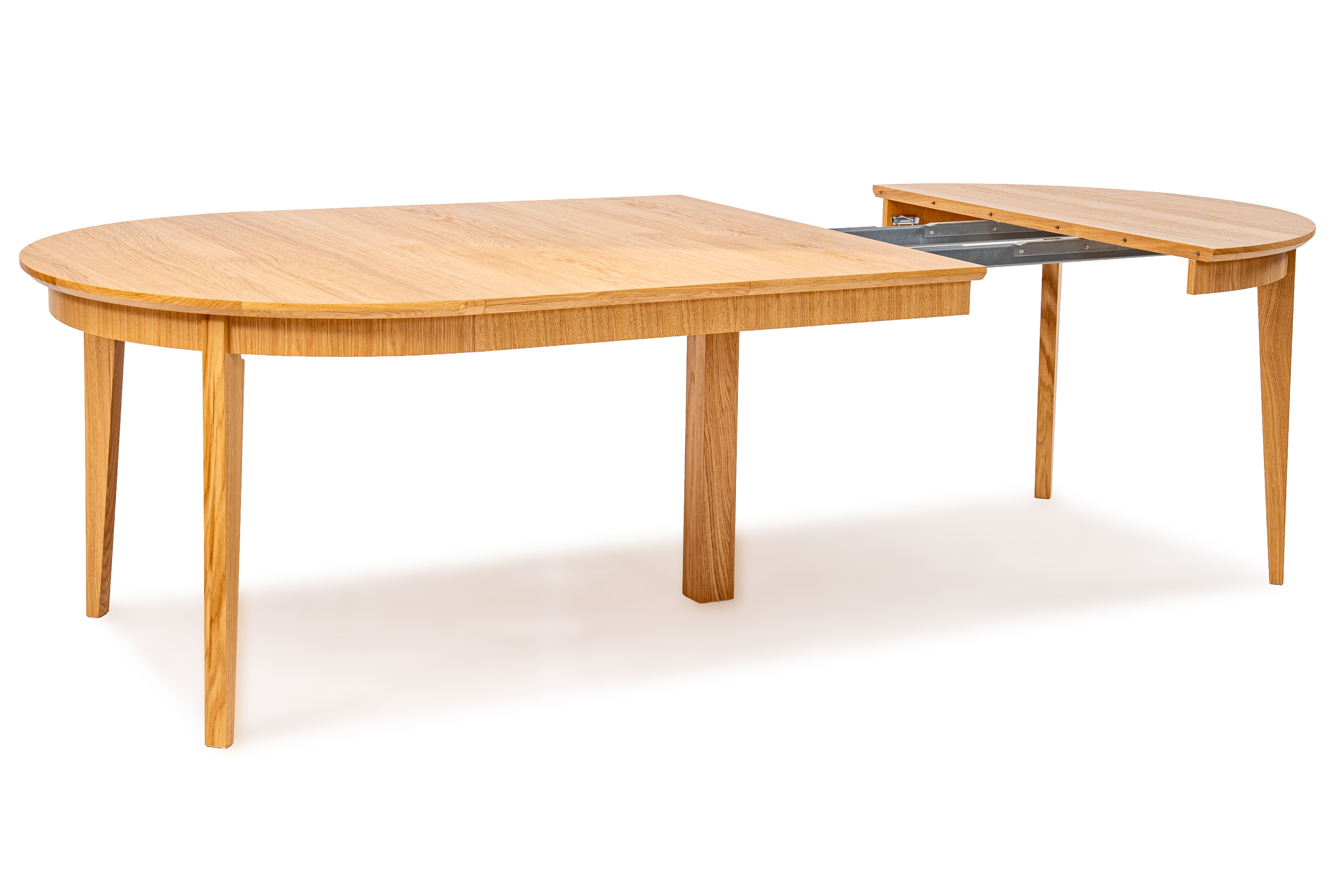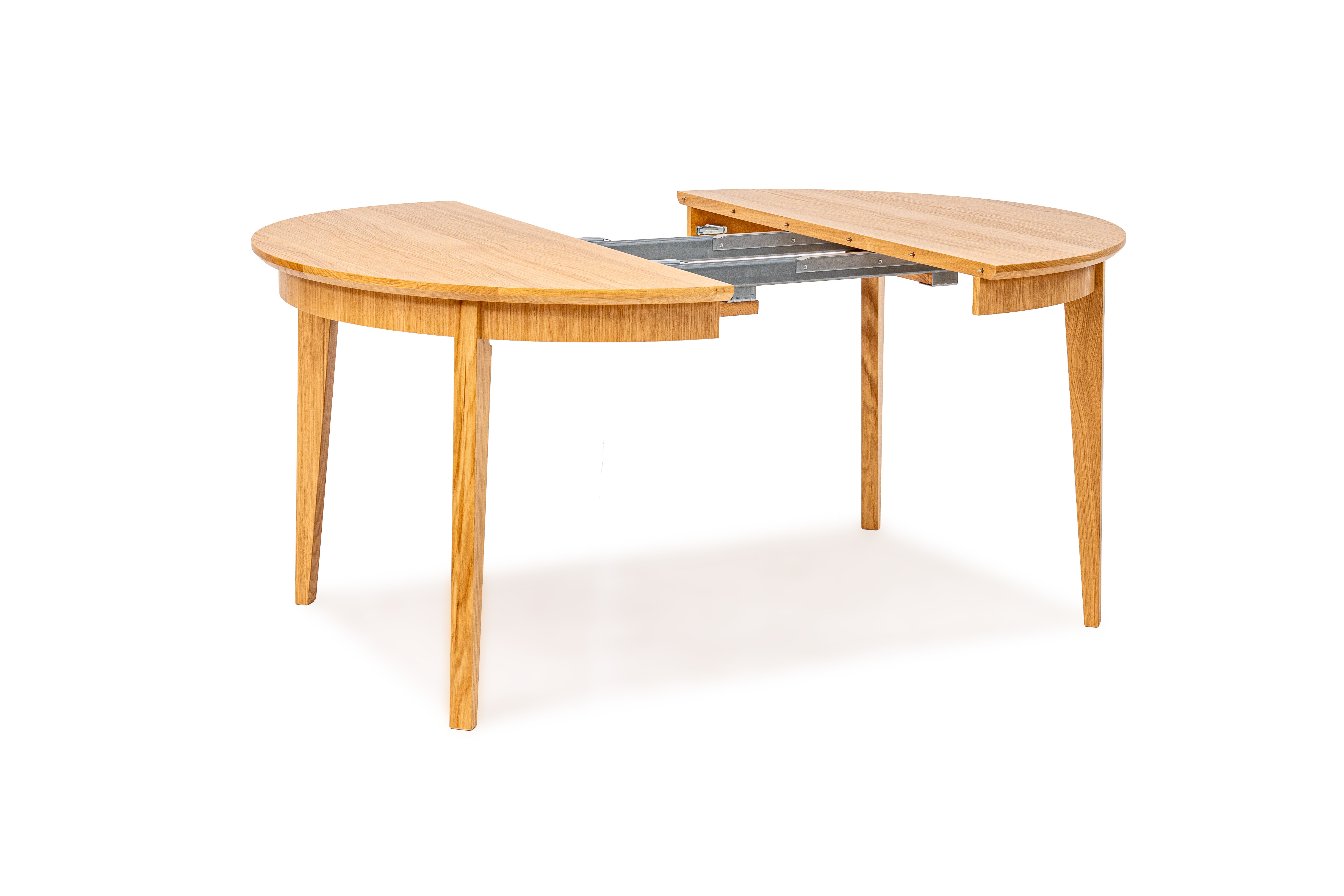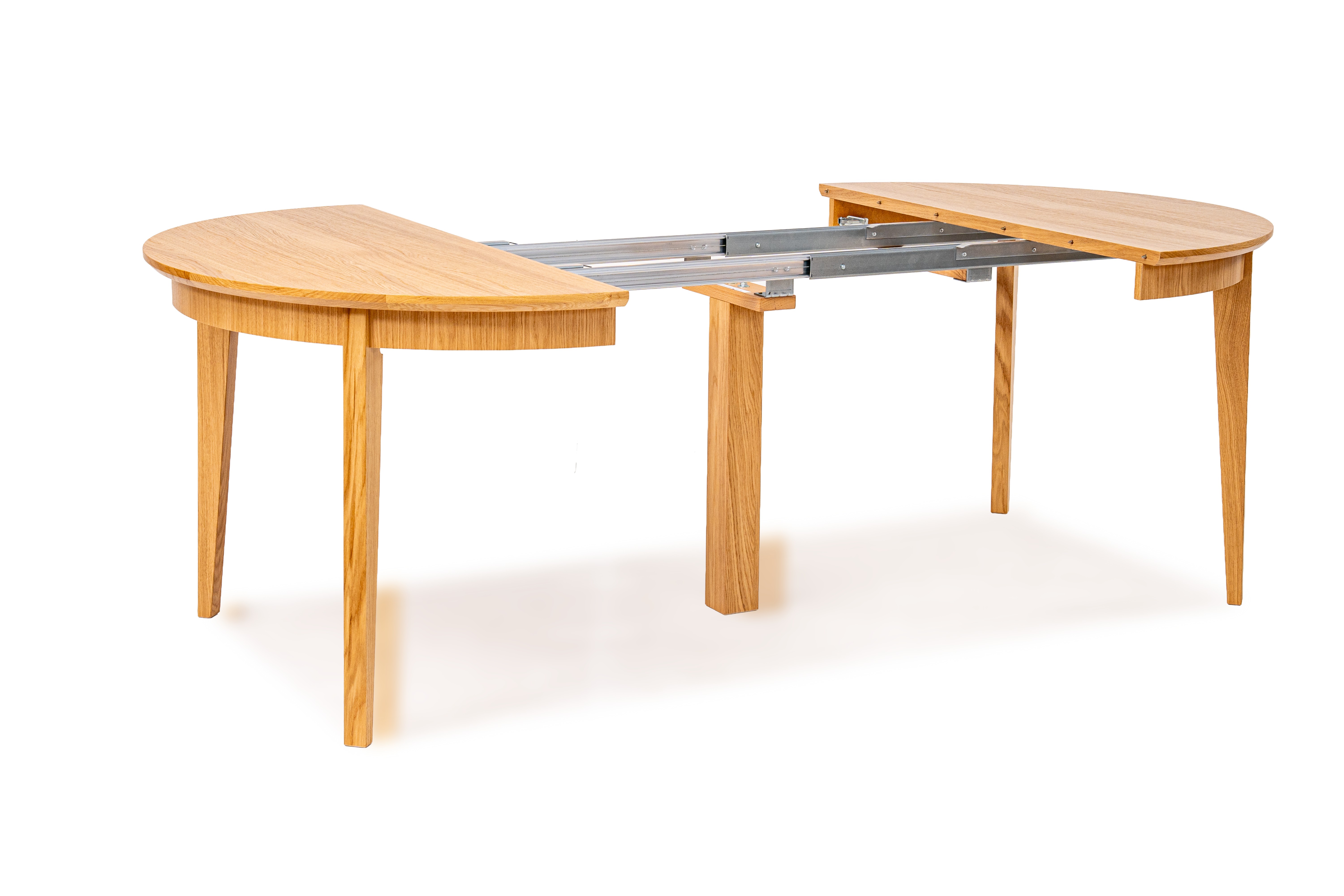 Po rozłożeniu blat zmienia kształt z okrągłego na owalny, dzięki czemu przy stole może usiąść więcej osób.