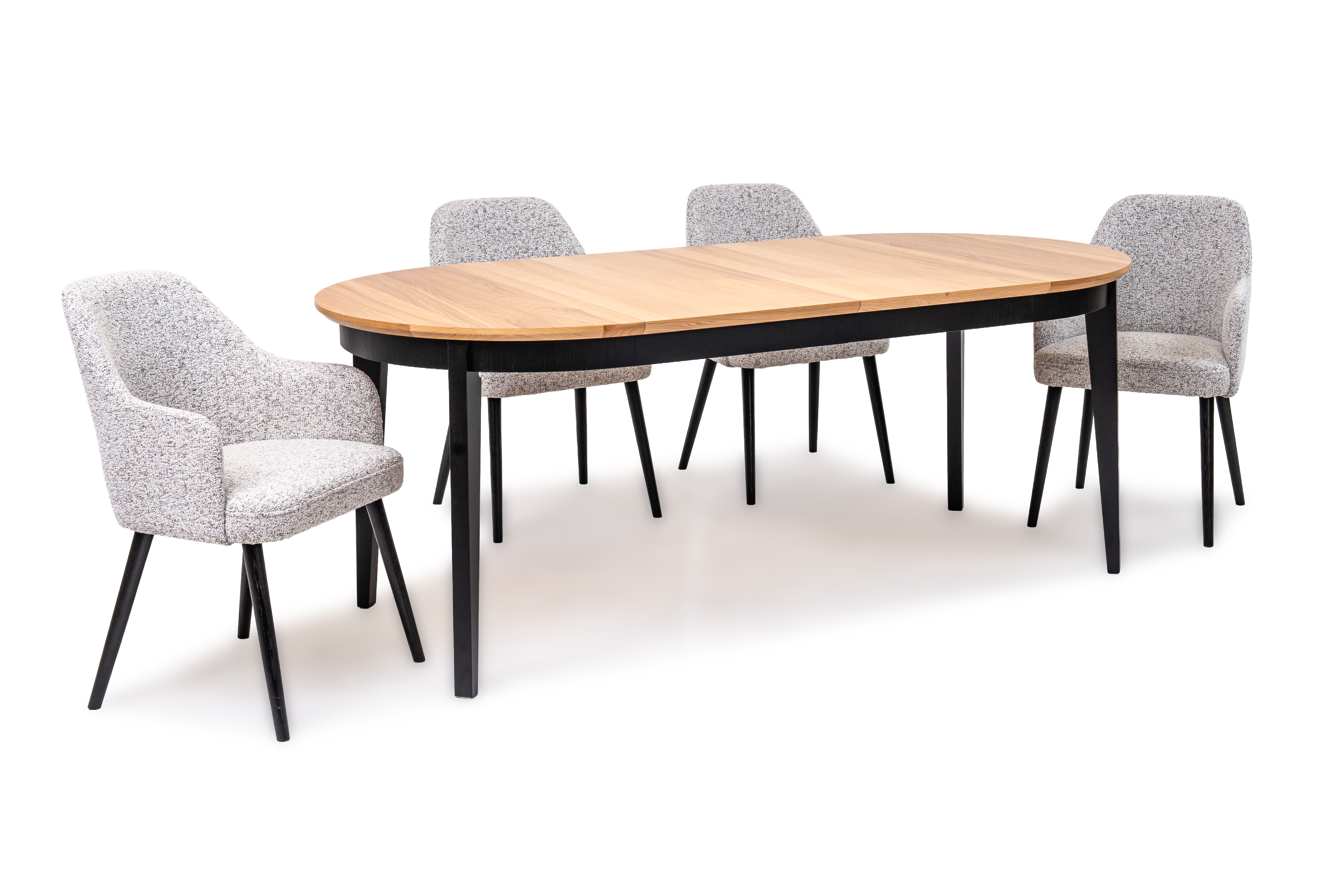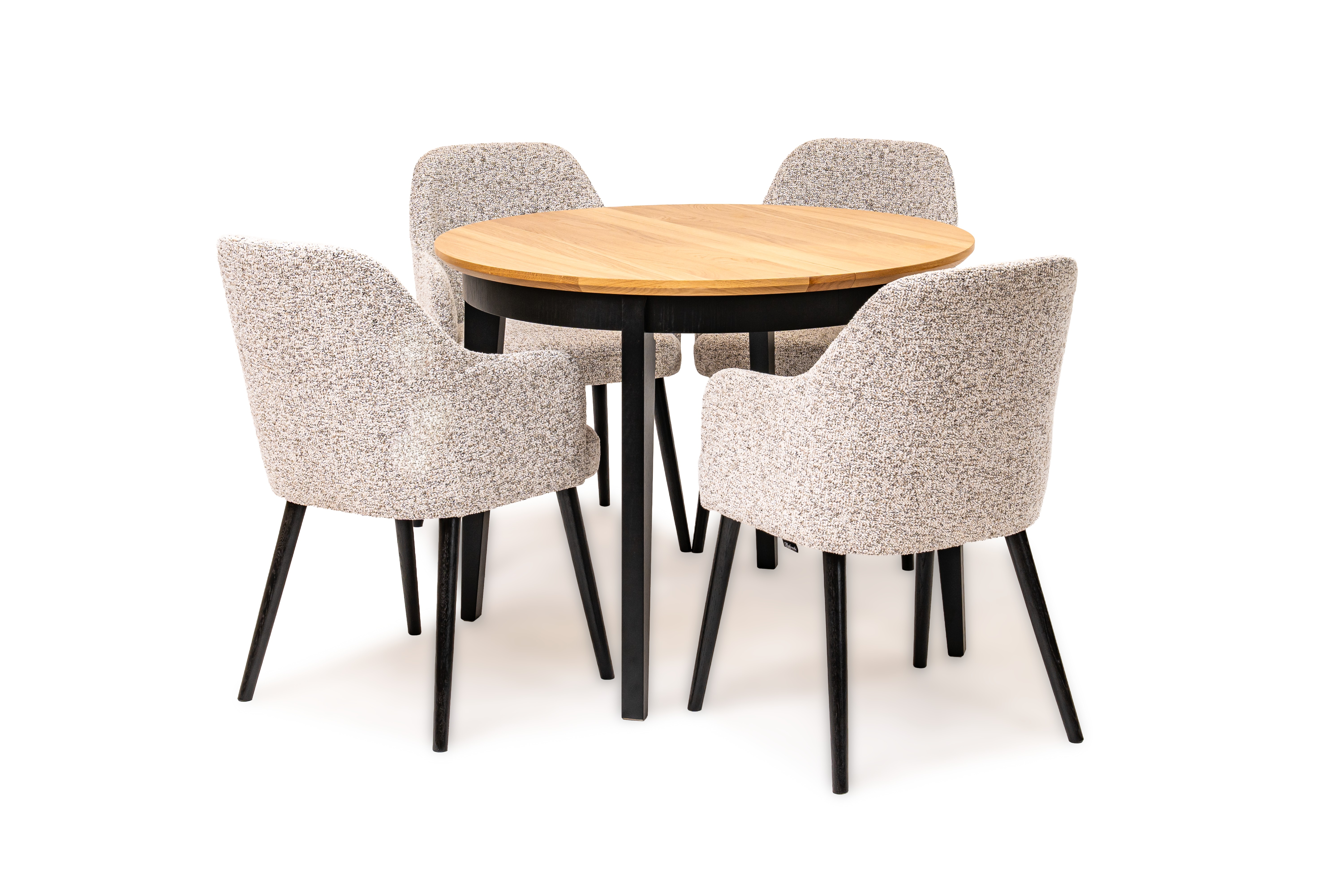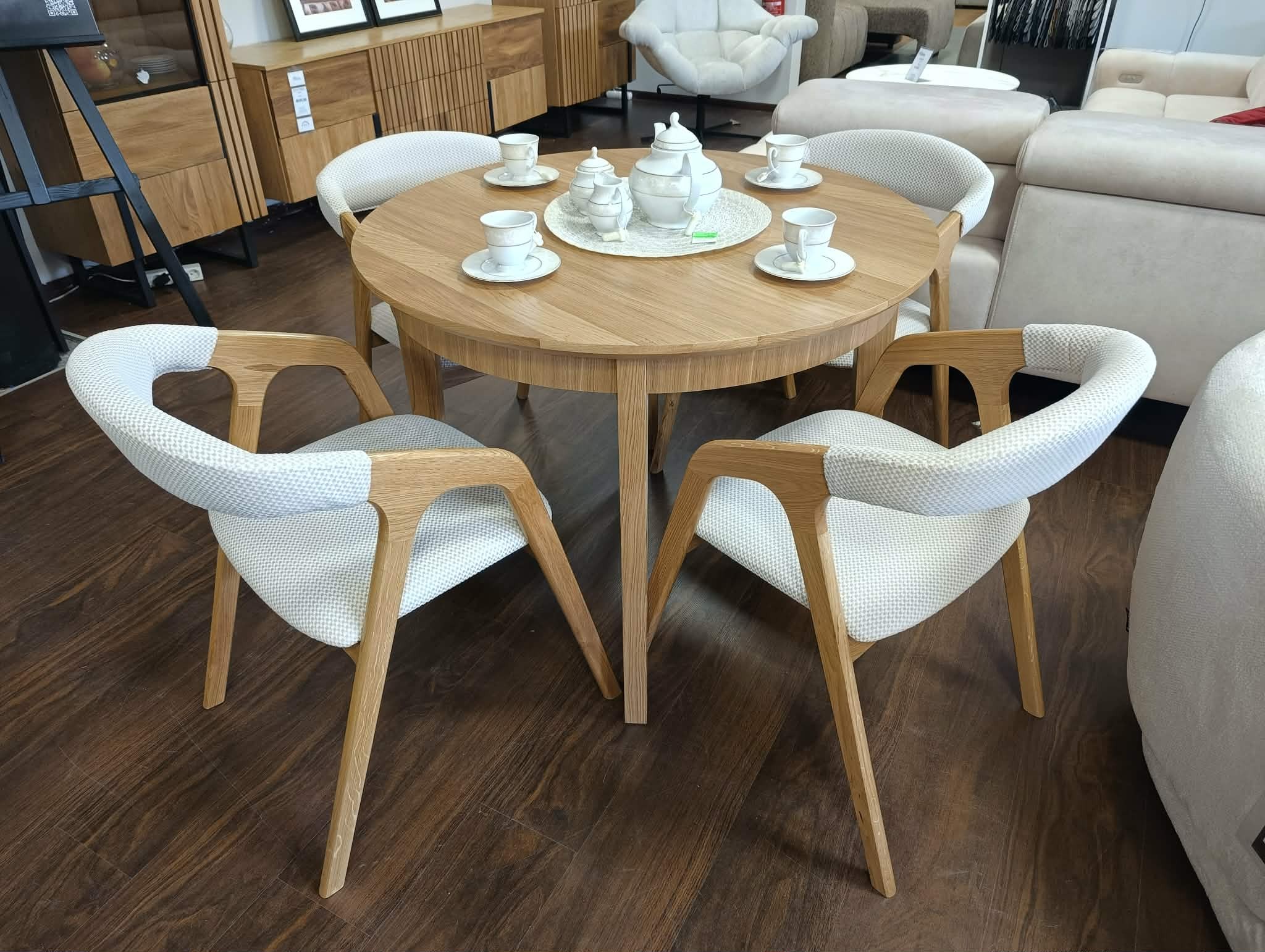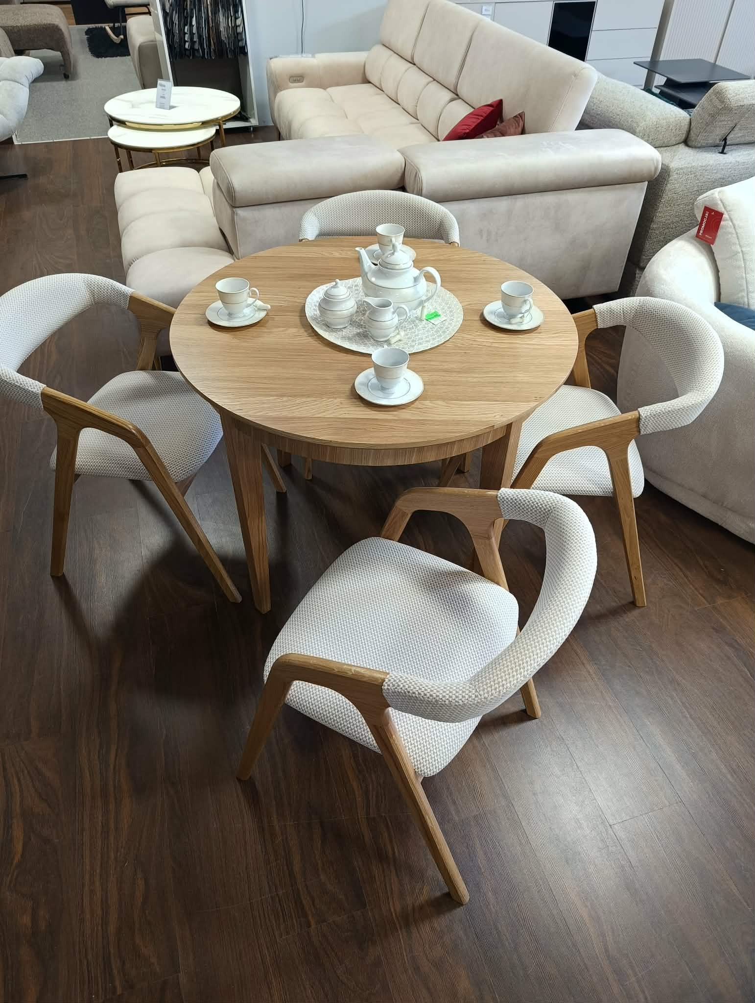 Stół VEGA to bardzo uniwersalny model, który dobrze odnajdzie się zarówno w kuchni, jak i w jadalni czy salonie. W wersji złożonej jest zgrabnym stołem okrągłym, który nie zajmuje dużo miejsca, a gdy pojawi się potrzeba – można go szybko powiększyć dzięki systemowi rozkładania. To praktyczne rozwiązanie na codzienne posiłki, rodzinne spotkania czy większe przyjęcia.