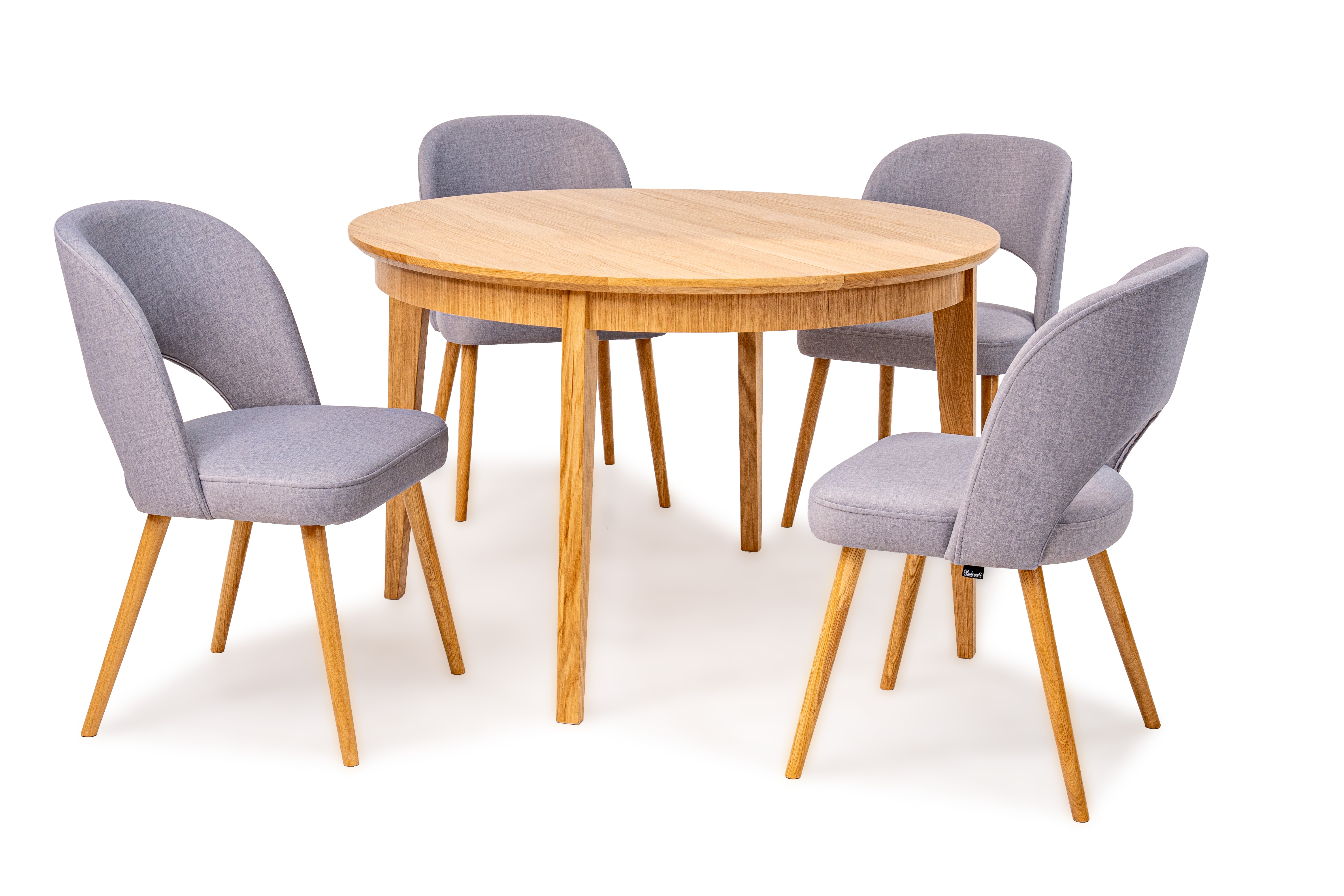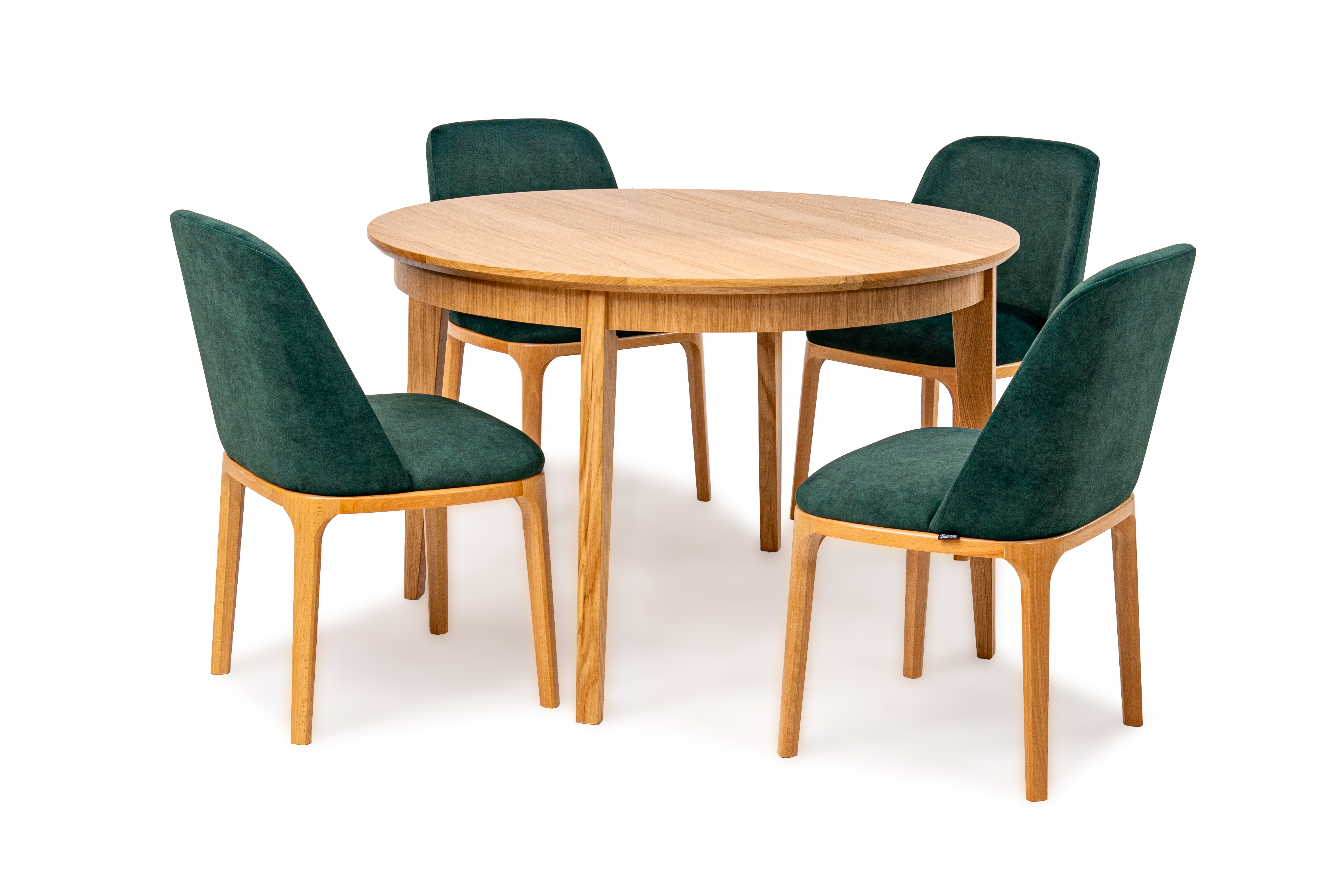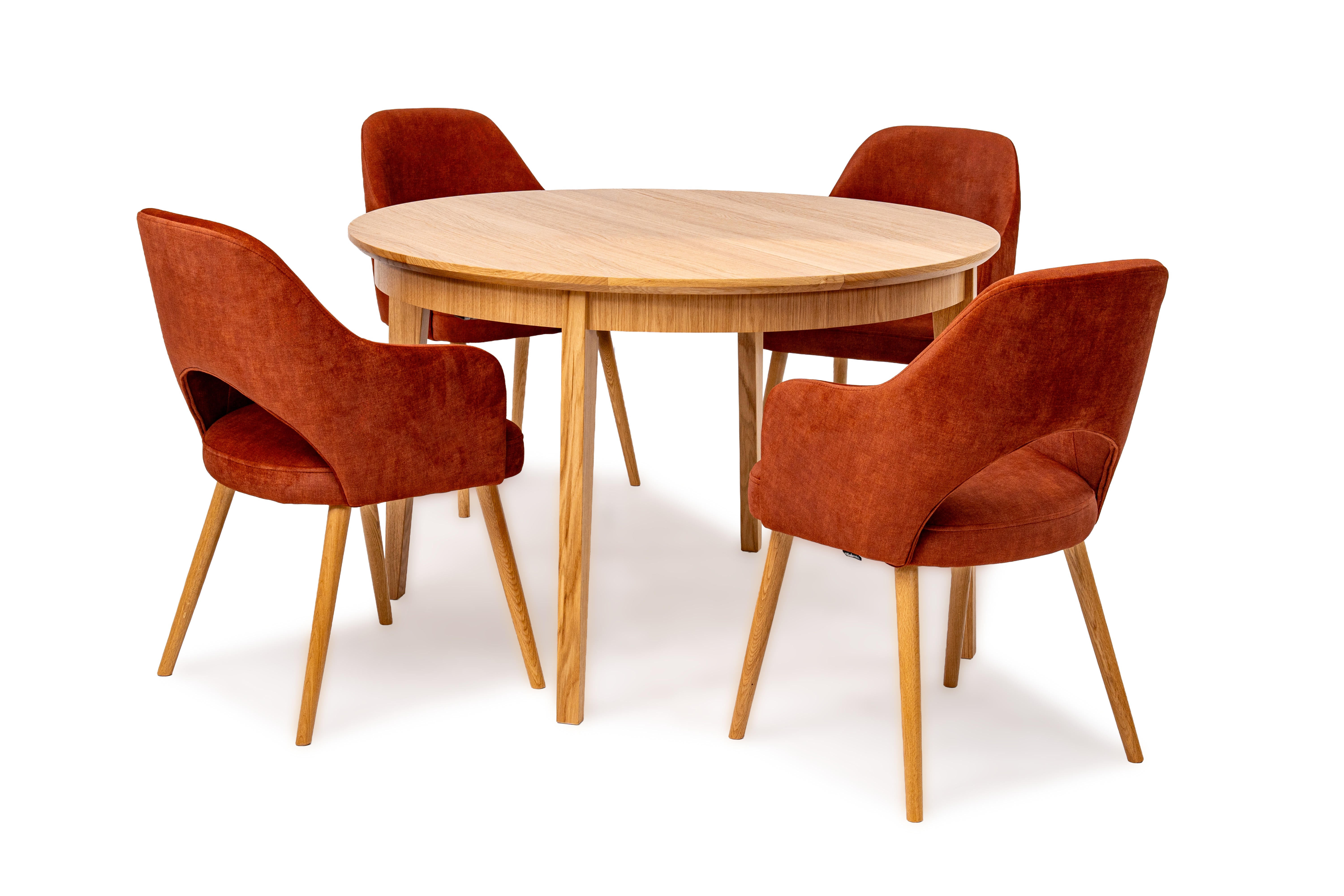 Model VEGA stoi na czterech prostych, solidnych nogach, dzięki czemu jest stabilny i wygodny w użytkowaniu. Blat wykonany został z naturalnej okleiny dębowej, co sprawia, że stół prezentuje się elegancko i naturalnie. Całość produkowana jest w Polsce z dbałością o jakość wykonania, dzięki czemu mebel będzie służył przez długie lata.