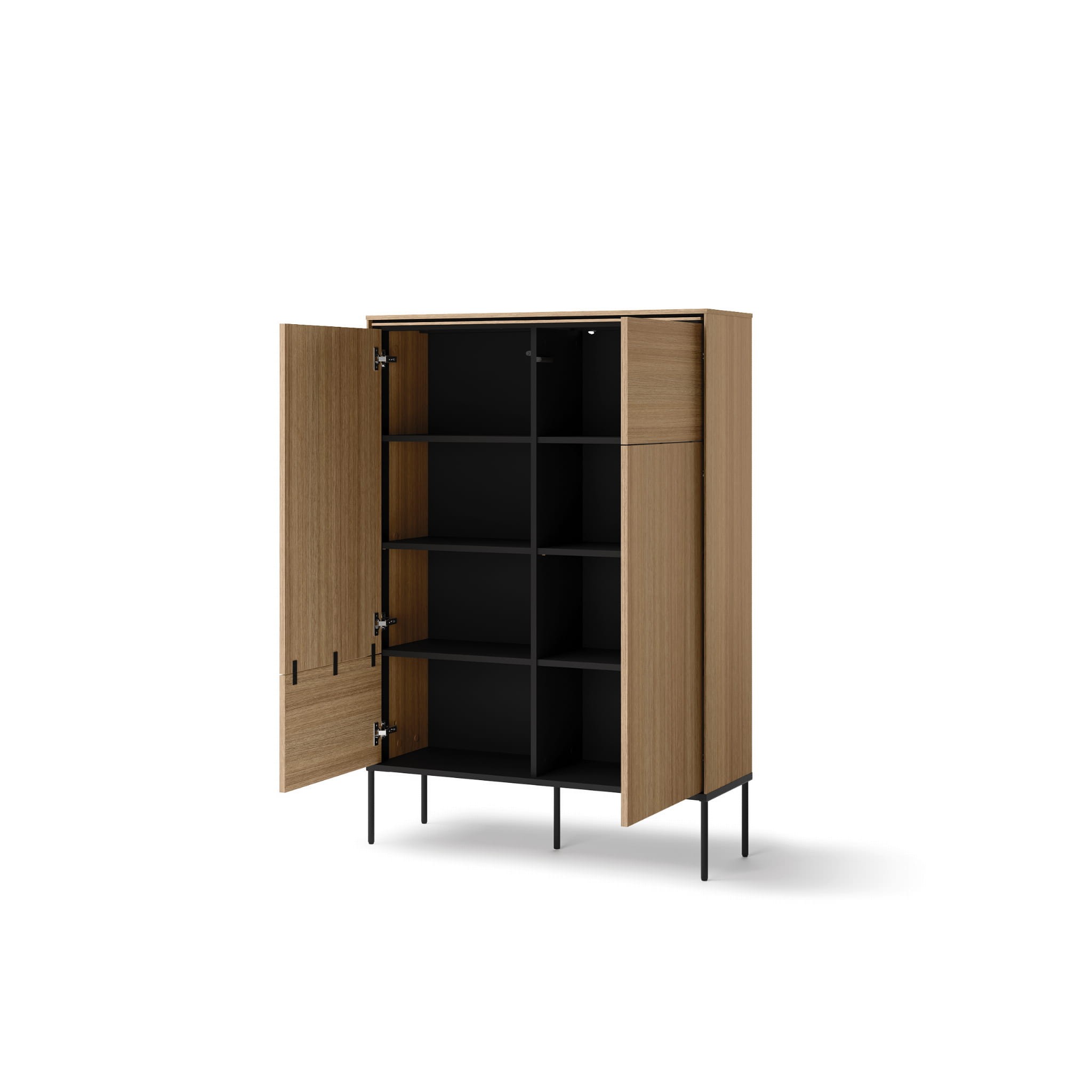 Metalowe nogi dodadzą Twojemu wnętrzu lekkości, sprawiając, że przestrzeń stanie się pełna lekkości i swobody. Dzięki głębokim półkom, estetyka i funkcjonalność splatają się w jedną całość, tworząc magiczny i unikatowy klimat.