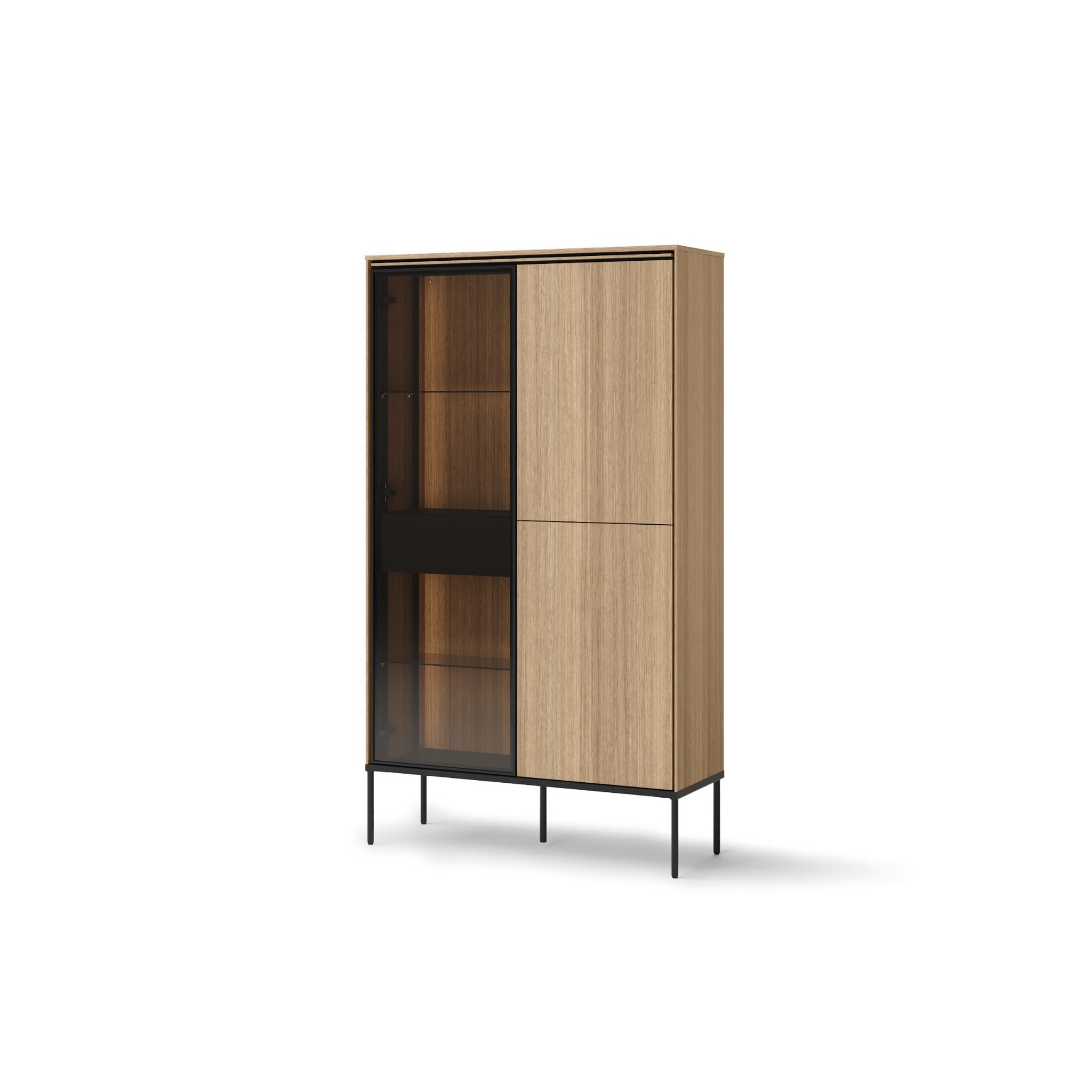 Kolor dębu linearnego w połączeniu z czernią sprawia, że komody doskonale komponują się z każdym wnętrzem, bez względu na styl. Ich uniwersalny design wprowadza ciepło i elegancję.