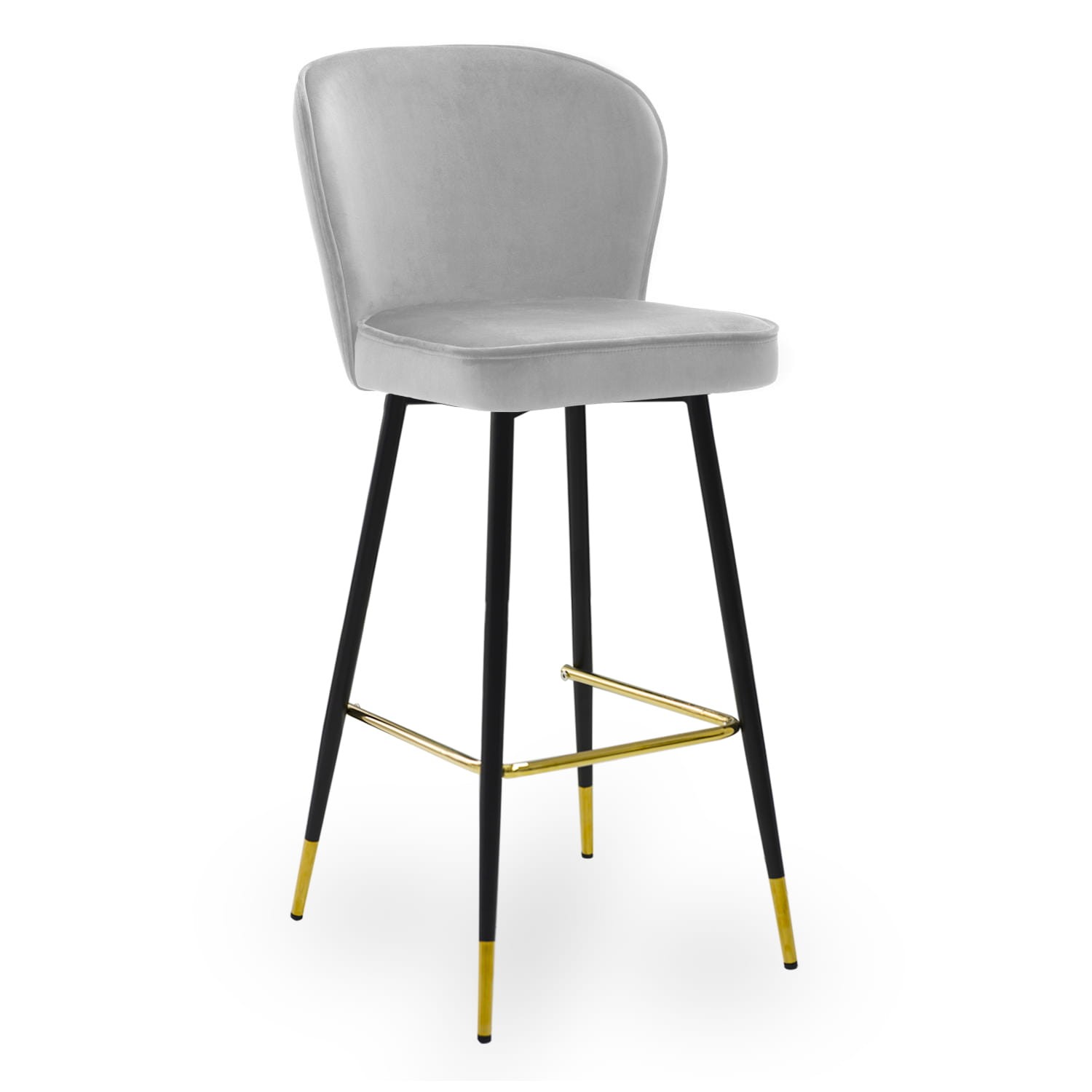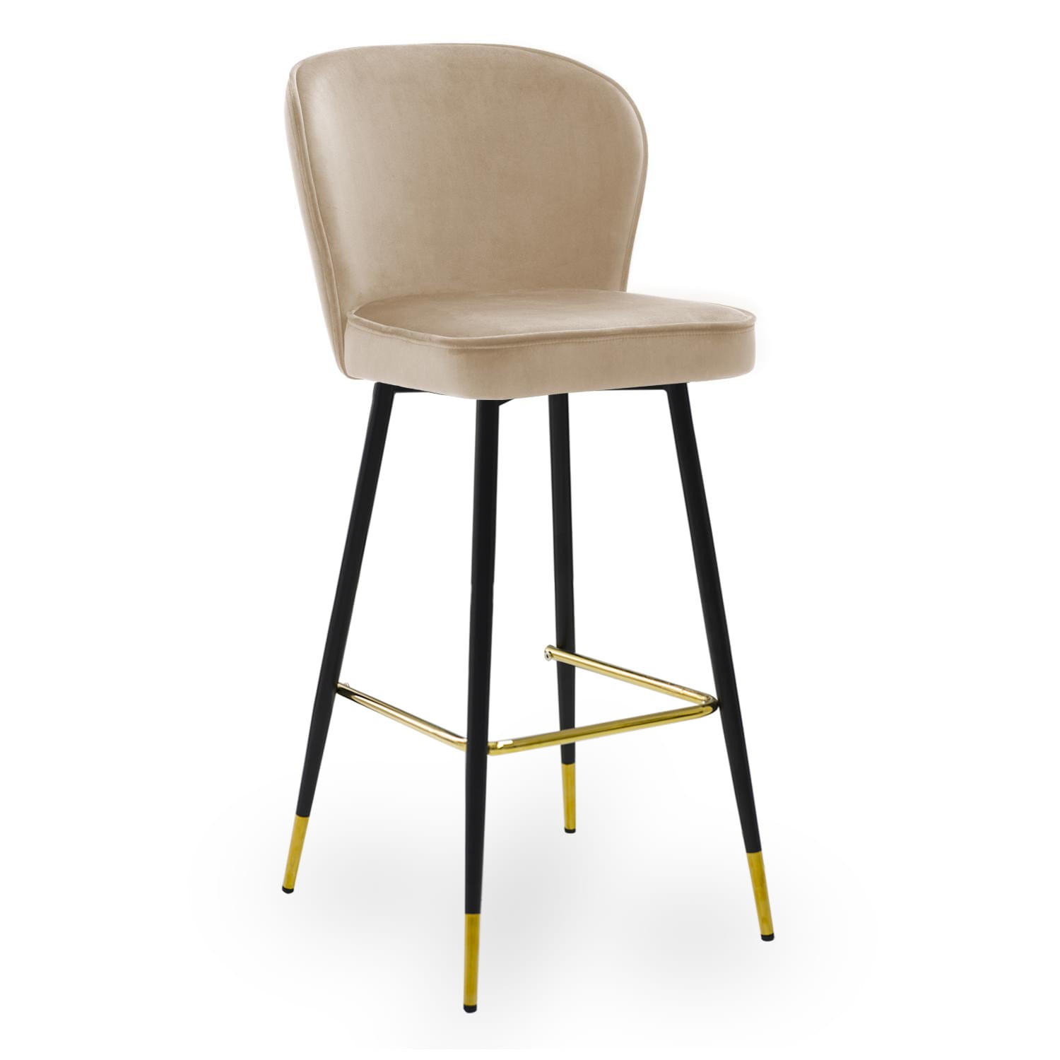Nowoczesny hoker (krzesło barowe) Aine na czarnej metalowej nodze ze złotymi dodatkami.