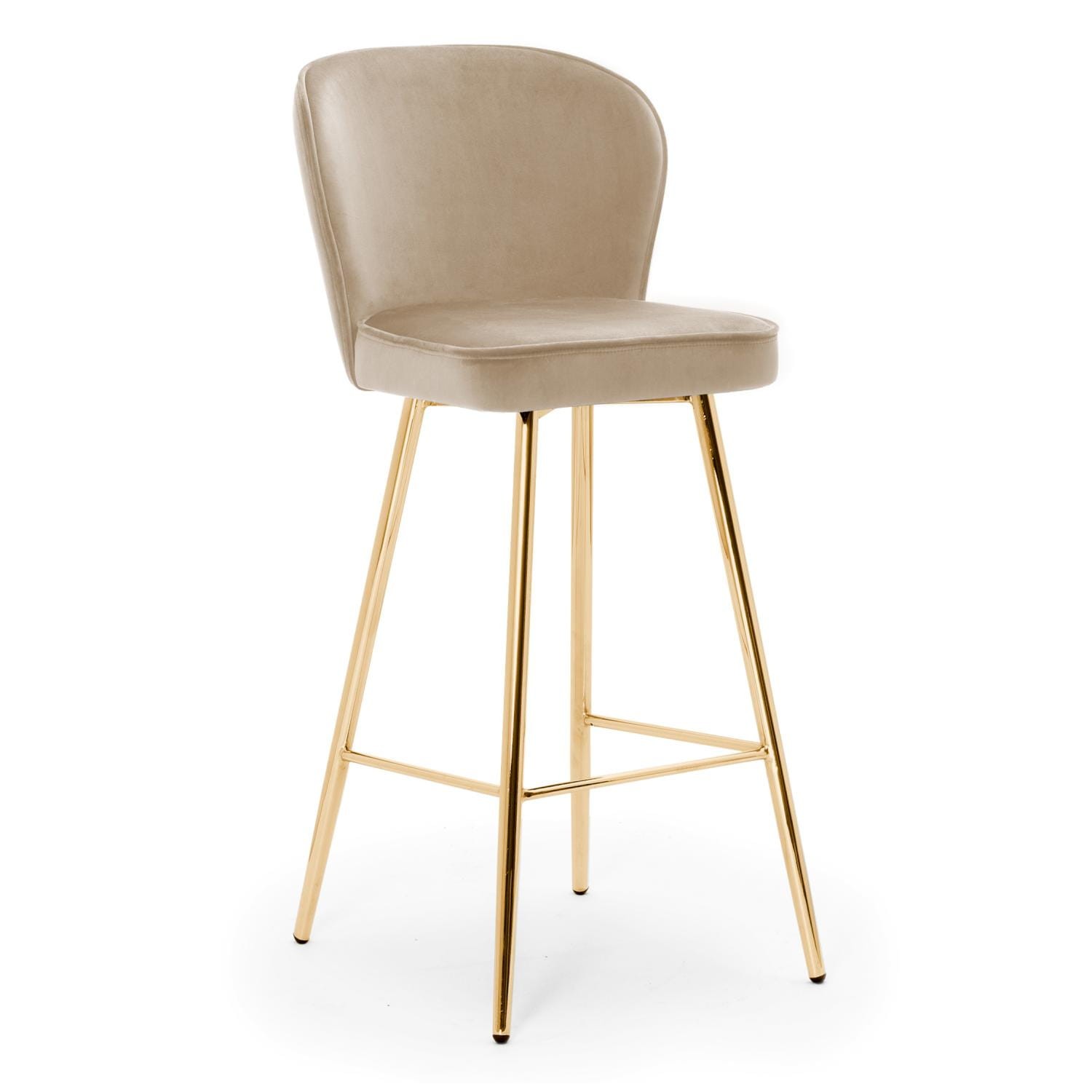 Nowoczesny hoker (krzesło barowe) Aine na metalowej nodze w kolorze złotym.