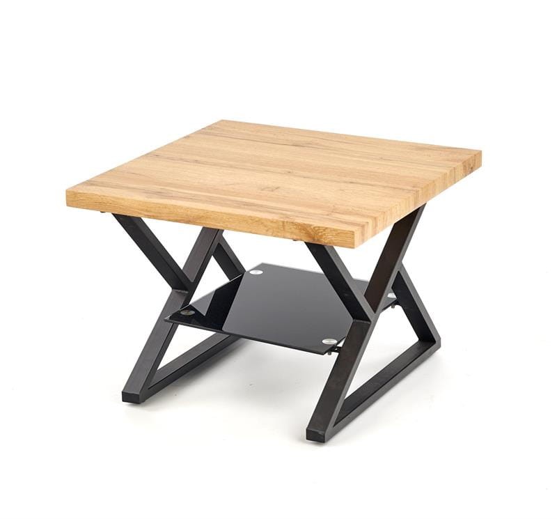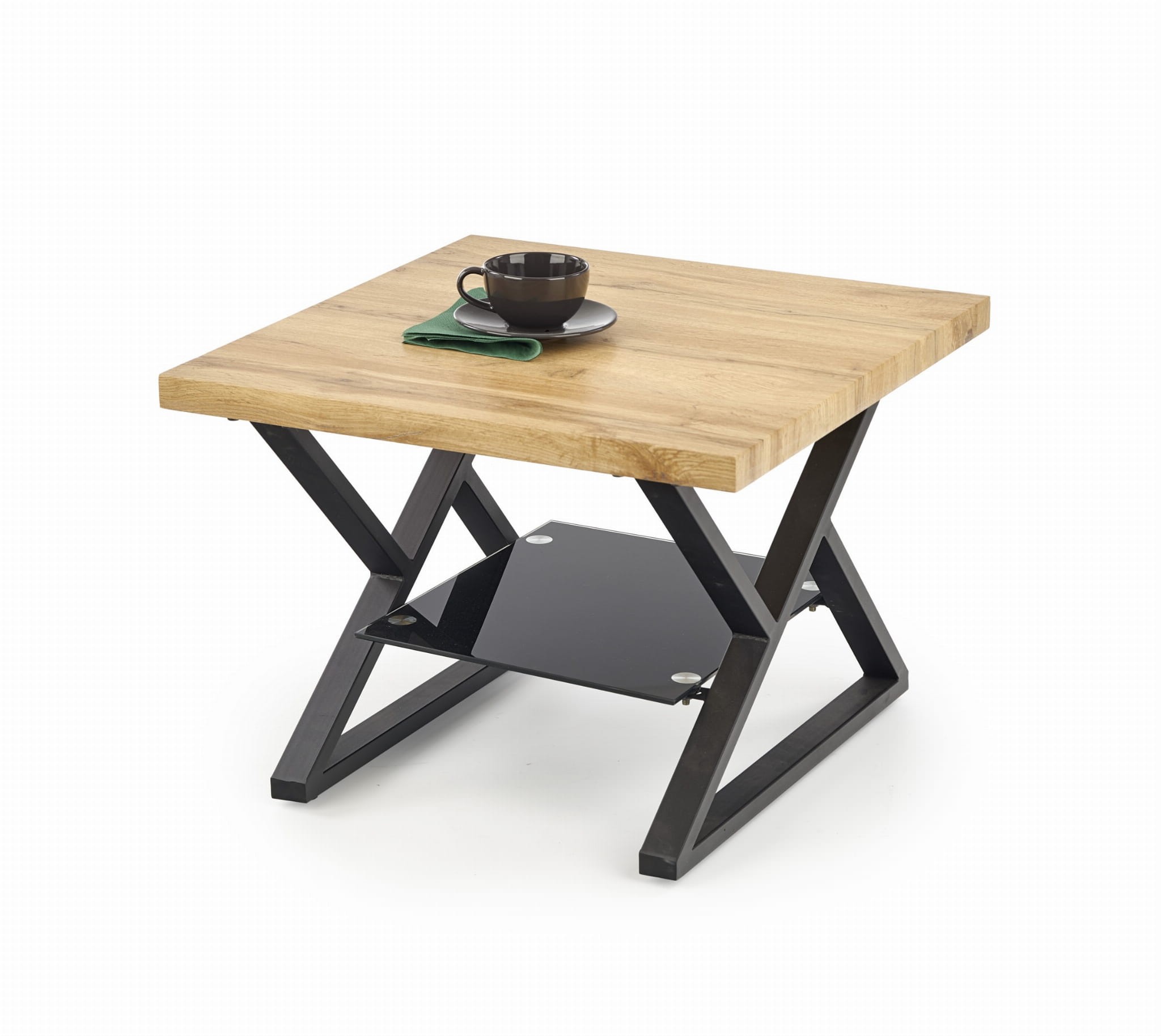 wymiary: 60/60/45 cm, materiał: MDF okleinowany / szkło / stal malowana proszkowo, kolor: dąb naturalny - czarny