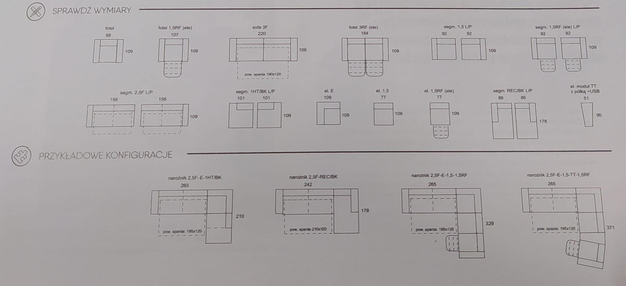 - duży wybór elementów z których można tworzyć sofy lub narożniki